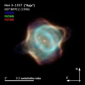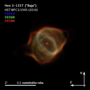 Zdá sa, akoby jedna takáto hmlovina, konkrétne Hen 3-1357, nazývaná Raja podľa svojho tvaru pripomínajúceho morskú parybu, bola vyvolená na to, aby sme ju pozorovali už na začiatku jej kariéry. V roku 1998 bola označená za najmladšiu známu planetárnu hmlovinu, keď Hubblov kozmický ďalekohľad (HST) zachytil vzácny pohľad na posledné štádiá života jej centrálnej hviezdy. Teraz, približne po 20 rokoch, Raja na seba opäť priťahuje pozornosť astronómov, ale z celkom iného dôvodu. Jej snímky z roku 2016 ukazujú, že hmlovina za posledných 20 rokov podstatne zoslabla. Navyše aj plynové obálky, ktoré obkolesovali centrálnu hviezdu, sa zmenili a už nie sú také kučeravé, ako bývali. Zmeny ako tieto neboli doteraz nikdy takto zreteľne pozorované. Astronómovia zachytili pohľad na rýchlo slabnúci plášť plynu obkolesujúci starnúcu hviezdu. Porovnanie snímok z roku 2016 so snímkami z roku 1996 ukazuje drastický pokles jasnosti a zmenu tvaru. Jasné modré svietiace výbežky a vlákna plynu takmer zmizli a vlnovité okraje, ktoré dávali hmlovine jej tvar, sú takmer preč. To je veľmi, veľmi dramatické a čudné, hovorí člen vedeckého tímu Martín A. Guerrero z Instituto de Astrofísica de Andalucía v Granade (Španielsko). To, čo práve sledujeme, je vývoj planetárnej hmloviny v reálnom čase. V časovom intervale niekoľkých rokov vidíme zmeny v hmlovine, čo sme nikdy tak zreteľne nevideli. Vedci objavili veľké zmeny aj v žiarení vysielanom atómami dusíka, vodíka a kyslíka, ktoré boli odvrhnuté zomierajúcou hviezdou v centre hmloviny. Napríklad emisie kyslíka medzi rokmi 1996 a 2016 poklesli asi 1 000-násobne. Zmeny v hmlovinách sa už pozorovali aj predtým, ale to, čo tu máme teraz, sú zmeny v základnej štruktúre hmloviny, objasnil Bruce Balick, vedúci nového výskumu z University of Washington (USA). Vo väčšine štúdií sa hmlovina zvyčajne zväčšuje. Tu sa však podstatne mení jej tvar, jasnosť sa zmenšuje a deje sa tak na veľmi krátkej časovej škále. Navyše, na naše prekvapenie, sa rozmer tejto hmloviny nezväčšuje. V skutočnosti kedysi jasný vnútorný eliptický prstenec sa zmršťuje a slabne.