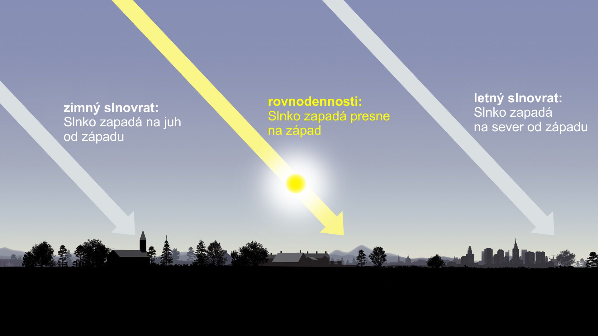 Slnko len dva dni v roku, počas jesennej a jarnej rovnodennosti, vychádza presne na východe a zapadá presne na západe.
