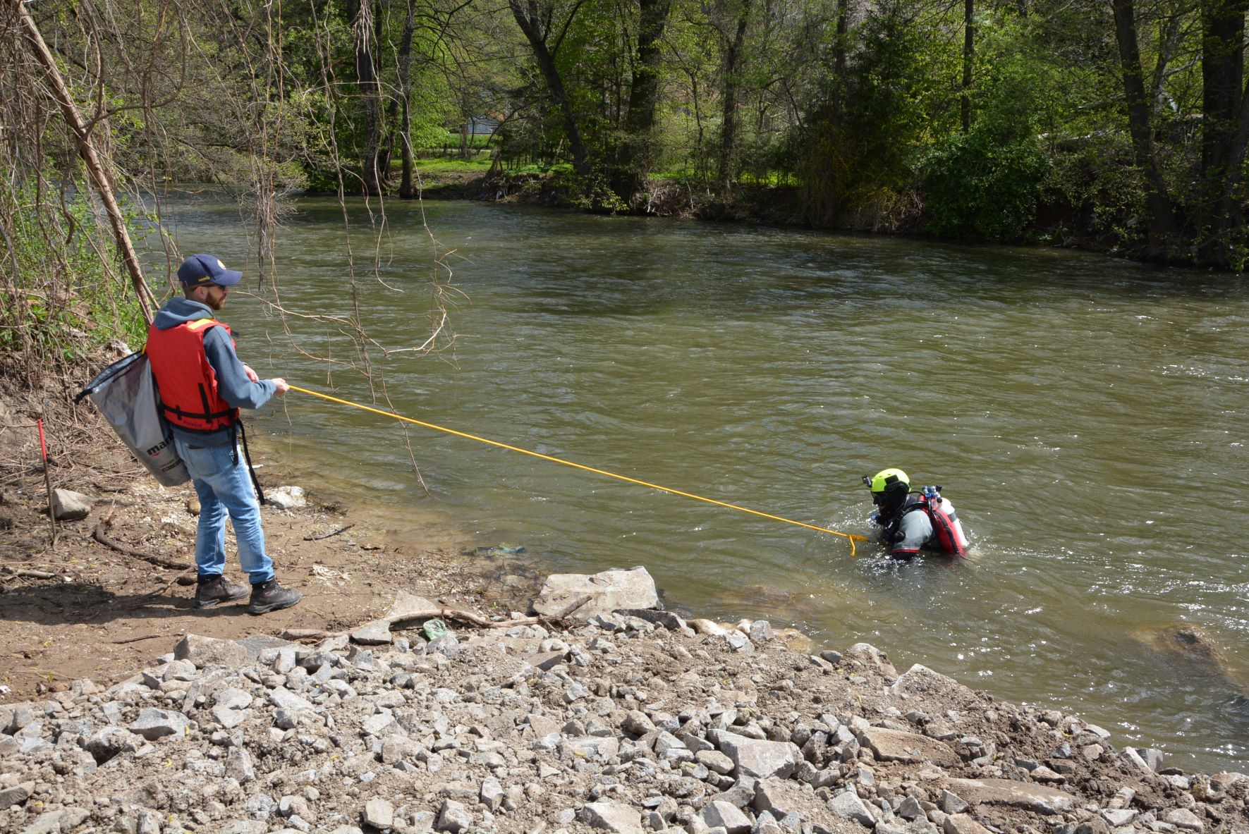 Pri potápaní v riekach používame laná. To znamená, že každý potápač má svojho navádzača. Nie je dobré, aby súčasne bolo pod hladinou príliš veľa ľudí. Ide skôr o záležitosť dvoch, maximálne troch potápačov, ktorí sú vo vode naraz. Okrem potápača a navádzača je vždy v člne alebo na brehu pripravený ďalší potápač, ktorý ide do vody v krízovej situácii. V prípade, že potápač nepotrebuje byť istený lanom, je dobré dodržiavať tzv. buddy potápanie, čiže vo dvojici.