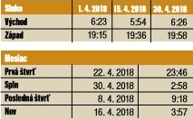 Prvé aprílové stretnutie nastane 2. apríla, keď si budeme môcť vychutnať v tesnej blízkosti Mars a Saturn len 1º od seba. Nájdeme ich v súhvezdí Strelca od tretej hodiny v noci. V sobotu 7. apríla sa k tejto dvojici pridá Mesiac a v spoločnosti oboch planét vytvoria už spomínaný trojuholník. Neptún nájdeme 13. apríla len 3º od Mesiaca. Oblohu po západe Slnka nám 17. apríla spestrí Venuša s Mesiacom. Neprehliadnuteľne sa budú vynímať nízko nad západným obzorom v súhvezdí Barana.