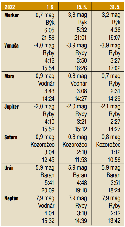 Astronomické kalendárium (máj 2022)