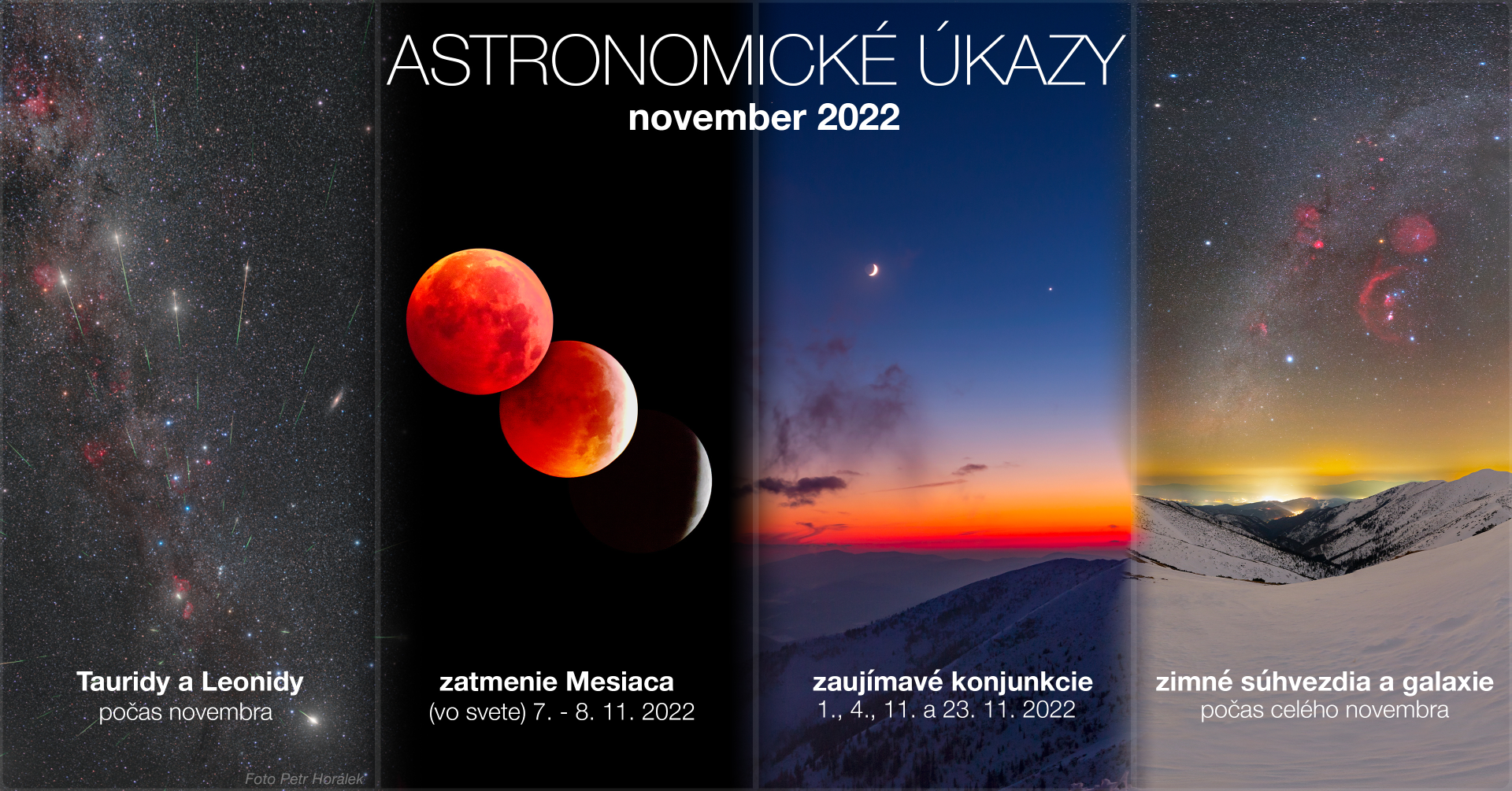 November je jedenástym, predposledným mesiacom v roku. Okrem dlhých zimných večerov prináša aj mnohé astronomické úkazy, ktorých pozorovanie by sme si nemali nechať ujsť.