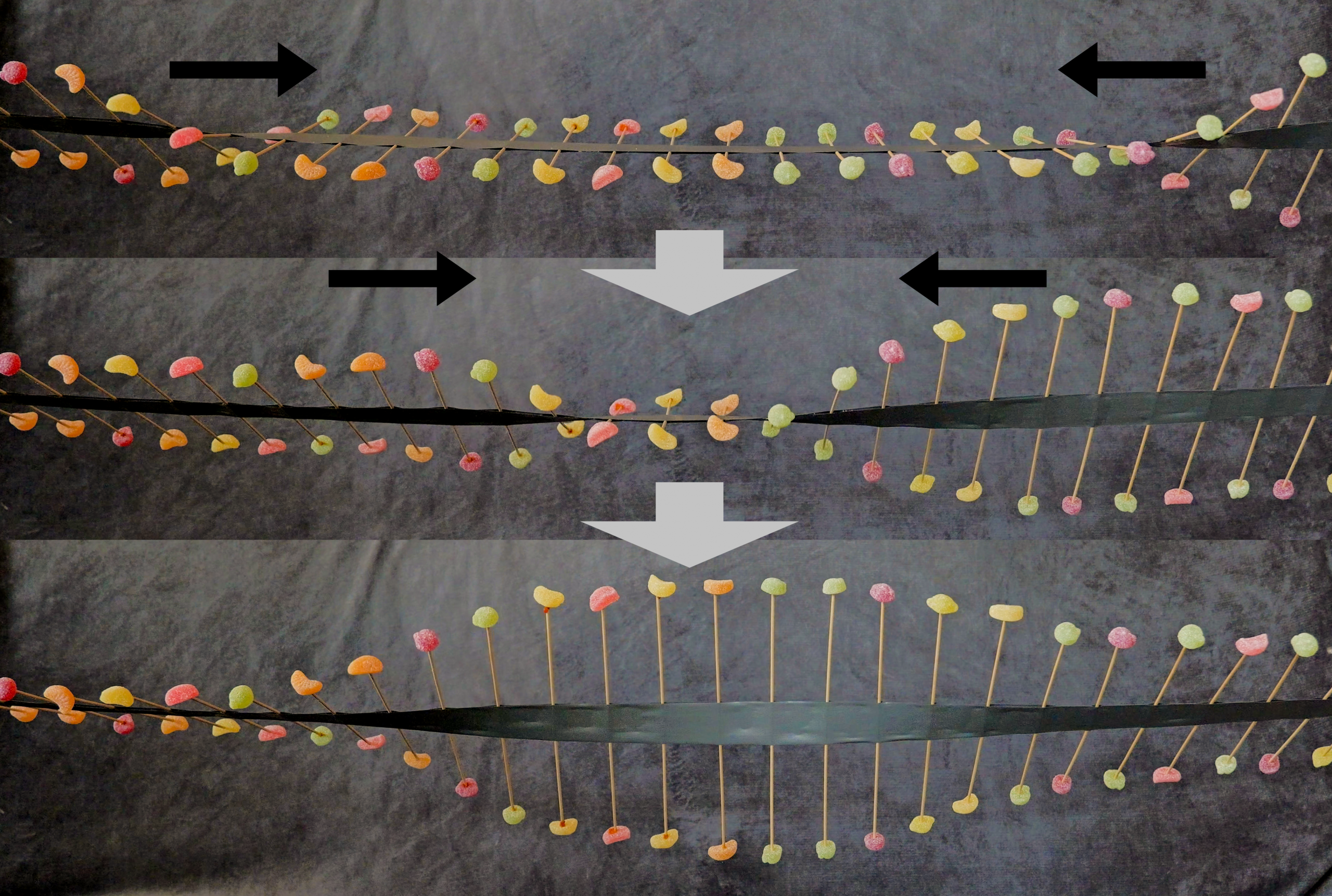 Umiestnením cukríkov meníme vlastnosti sústavy. Zaujímavé javy môžeme pozorovať aj vtedy, keď sme ich umiestnili iba na prvú polovicu špajdlí a druhú nechali prázdnu.