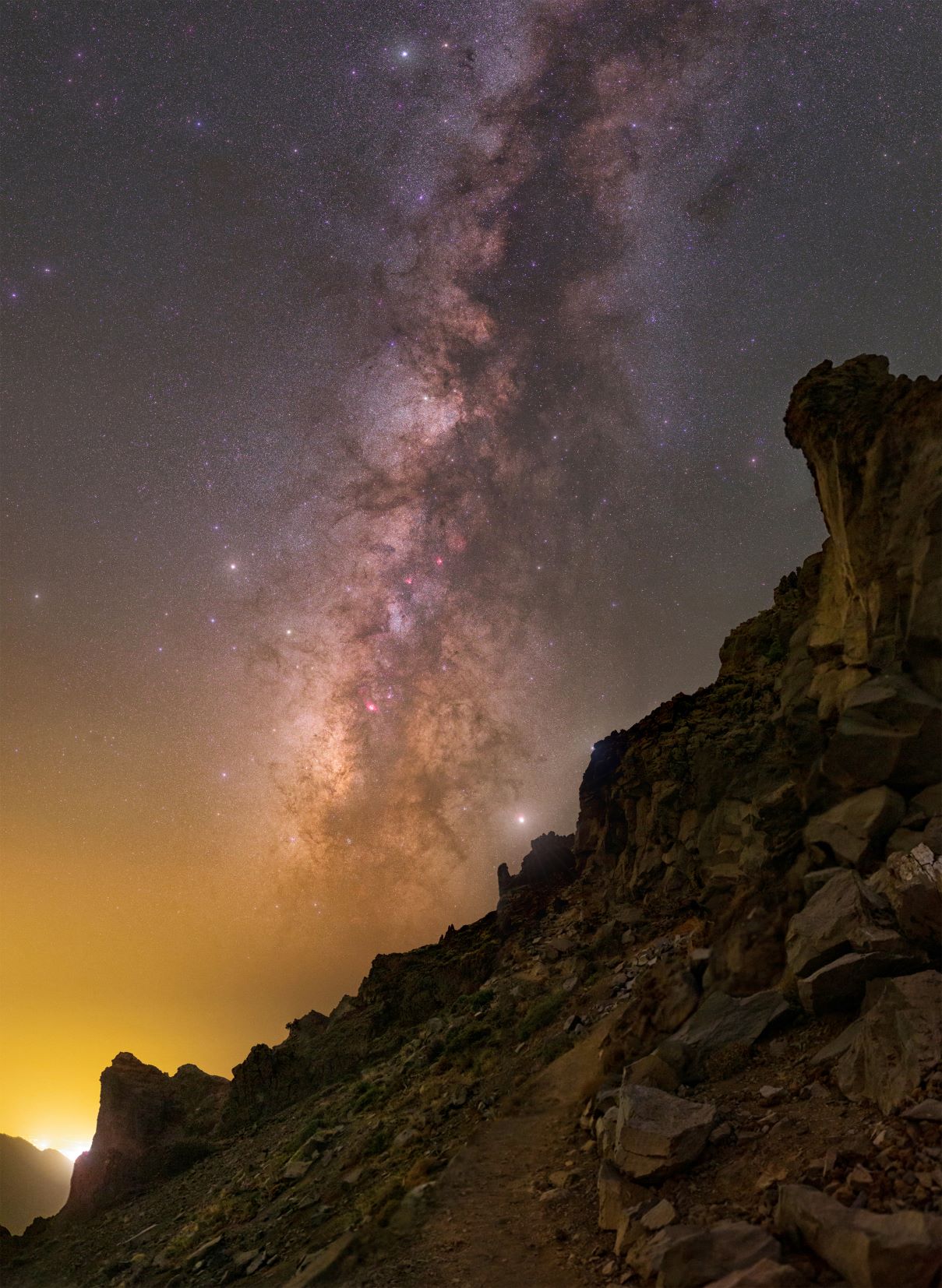 Jedna z najzaujímavejších vecí, ktoré môžeme na La Palme vidieť, je nočná obloha. Nádherné divadlo sa začína západom Slnka. My sme strávili túto časť dňa a aj nasledujúcu noc neďaleko observatória, a tak sme videli toto nebeské divadlo priamo z prvého radu. Nočnú oblohu v tejto nadmorskej výške pozorujeme cez menšiu časť atmosféry než zvyčajne. Takto vieme čiastočne zamedziť atmosférickým chybám pri pozorovaní. Aj preto sa väčšina svetových observatórií nachádza na vrcholoch vysokých hôr ako napríklad observatórium v čilskej púšti Atacama s názvom ALMA vo výške 5 058 m n. m. či observatórium na vrchole havajskej vyhasnutej sopky Mauna Kea vo výške 4 205 m n. m. Okrem nadmorskej výšky pozorovanie ovplyvňuje aj svetelné znečistenie. Na ostrove La Palma síce svetelné znečistenie nie je úplne zanedbateľné ako v prípade už spomenutých observatórií, ale tým, že sa na ostrove tvorí silná inverzia, ktorá pohlcuje väčšinu svetla z miest na pobreží, sú na vrchole pozorovacie podmienky vynikajúce.