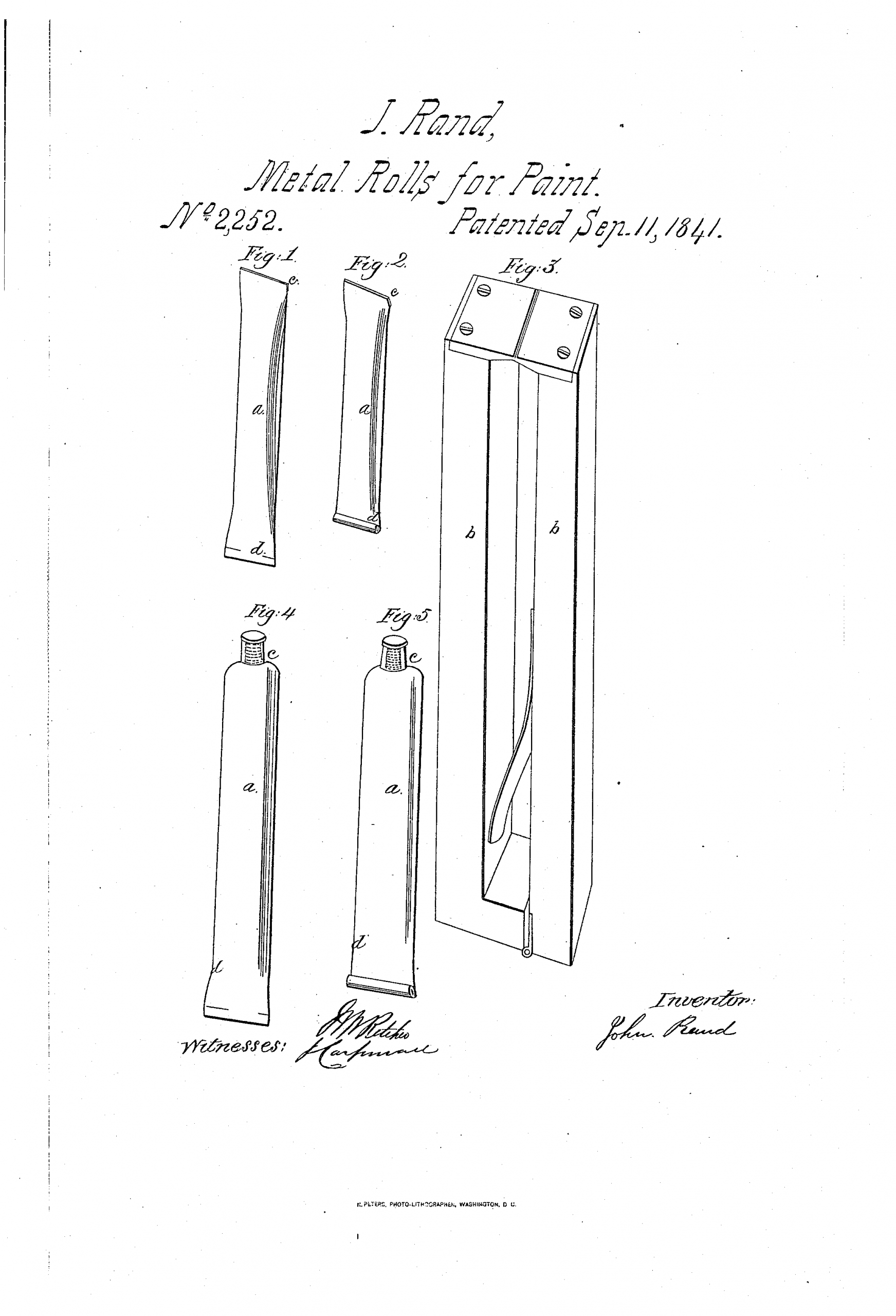 Mimochodom, cínovú tubu, ktorá tak potešila Clauda Moneta a ďalšie generácie umelcov, vynašiel tiež maliar: americký portrétista John Goffe Rand si v roku 1841 patentoval kolabovateľnú kovovú nádobu na uchovávanie farieb a iných tekutín. Vyriešil tak svoju frustráciu s uchovávaním pigmentov v prasacom mechúre, ale ušetril aj nám starosti s každodenným zarábaním zubnej pasty.