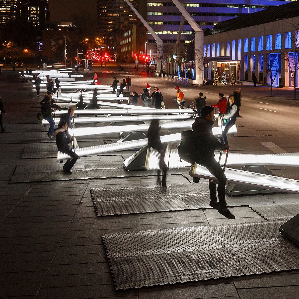 Hliníkové hojdačky rôznych dĺžok, od 4,8 do 7,3 metra, sú vybavené LED svetlami a reproduktormi prehrávajúcimi zvukovú a svetelnú sekvenciu, hneď ako ich ľudia aktivujú tým, že si jednoducho sadnú na oba konce a chytia sa za držiaky. Každá z hojdačiek má svoju vlastnú tónovú zostavu, ktorá rezonuje s ostatnými. Zariadenie matne svetielkuje aj vtedy, keď sa práve nepoužíva.