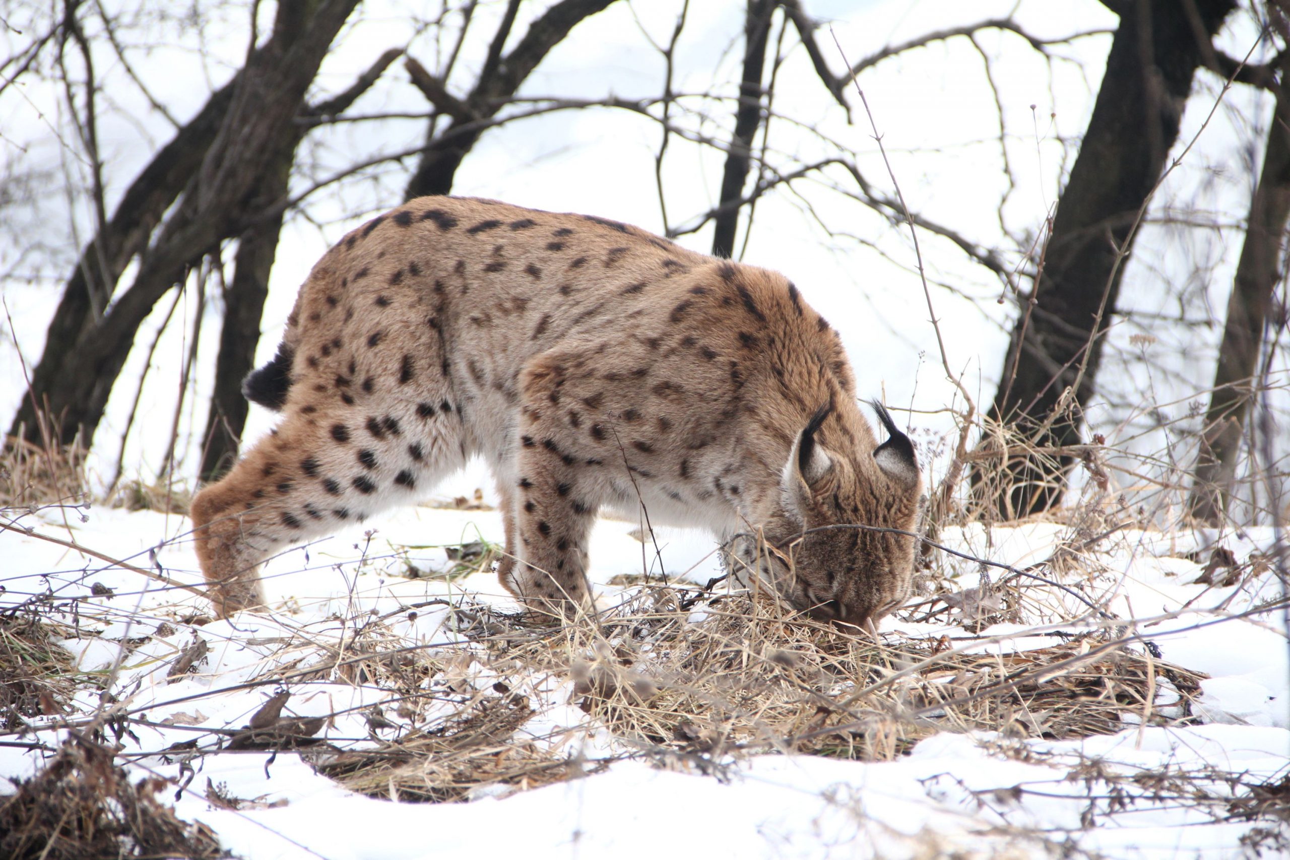 Na love drobných hlodavcov, ktoré sa v zime zdržujú v suchej tráve