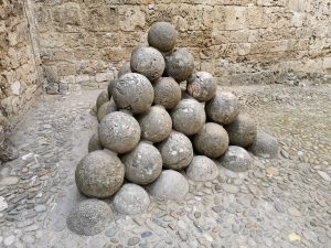 Obr.1 Kanonenkugeln_in_der_Burg_von_Burghausen