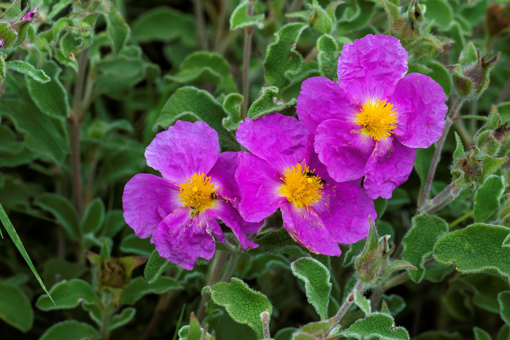 Aj ružovo kvitnúci cistus Cistus incanus kvitne predovšetkým v jarnom období. Jemné kvetné lupienky sa javia, akoby boli pokrčené. Tento druh sa vyskytuje v porastoch typu makchia a garrigue. V letných horúčavách by sme jeho nádherné kvety, pripomínajúce trochu aj ruže, už nenašli. Cistusový ker dosahuje výšku až do 150 cm. Je veľmi rozšírený a patrí k významným liečivým rastlinám. Prípravky z neho pomáhajú organizmu bojovať proti vírusom, baktériám a plesniam a tiež podporuje imunitu. V tradičnej medicíne je Cistus incanus známy ako skalná ruža, prípadne aj divoká ruža. U nás túto rastlinu prezývajú aj ako slovenské Aloe vera.
