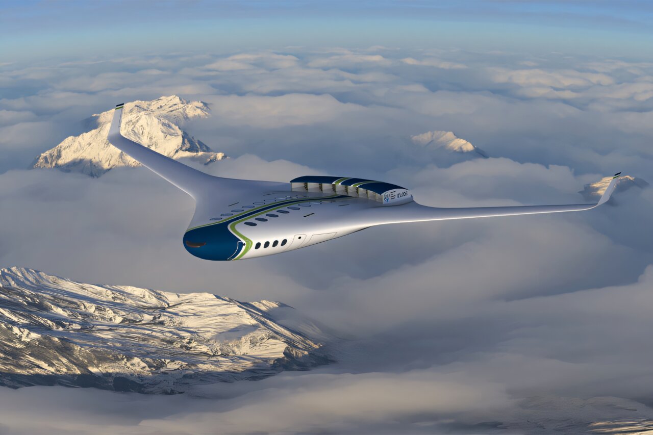 Futuristické lietadlo vysoko v oblakoch