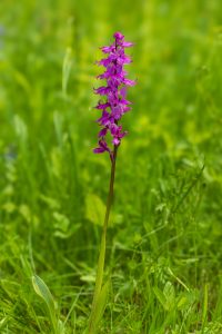Dlhá stonka s fialovými kvetmi. Tak možno charakterizovať vstavač mužský