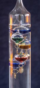 Aj teplomer môže vyzerať ako malé umelecké dielo. Pripomína teplovzdušné balóny uzavreté v sklenom valci, ktoré sa ladne pohybujú hore a dole. Na akom princípe funguje?