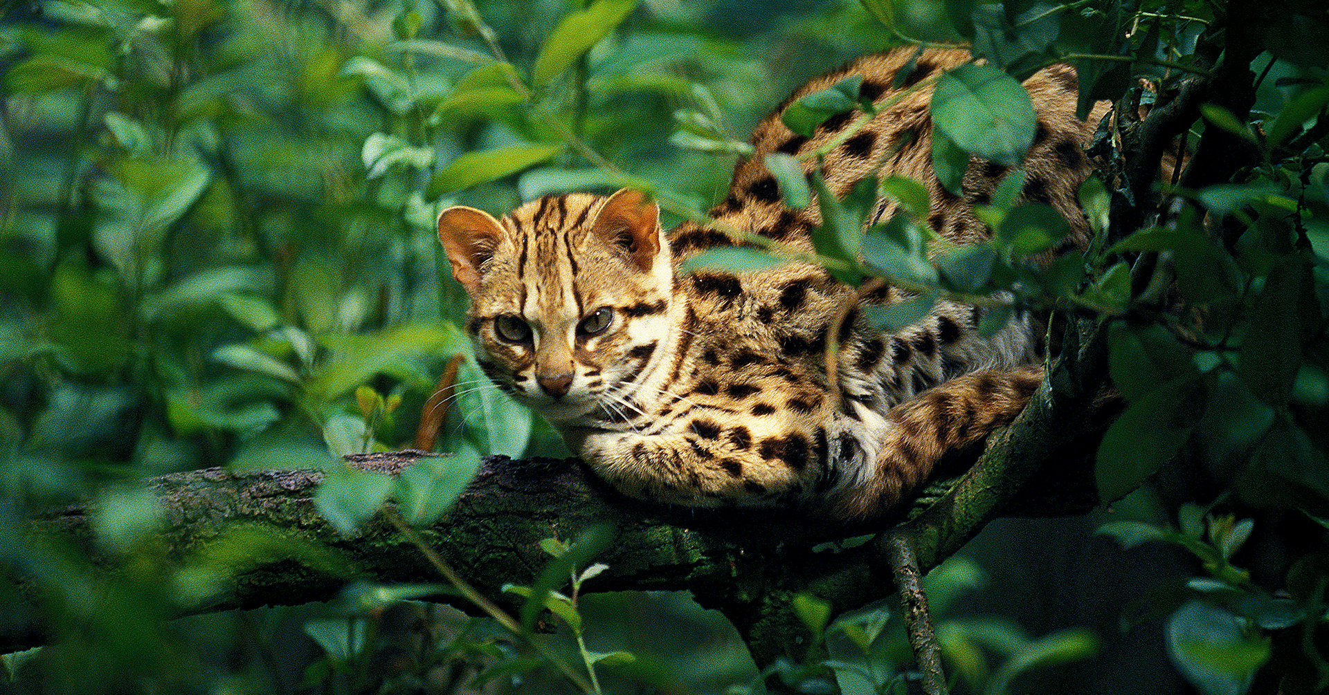 Mačka bengálska uprostred vegetácie