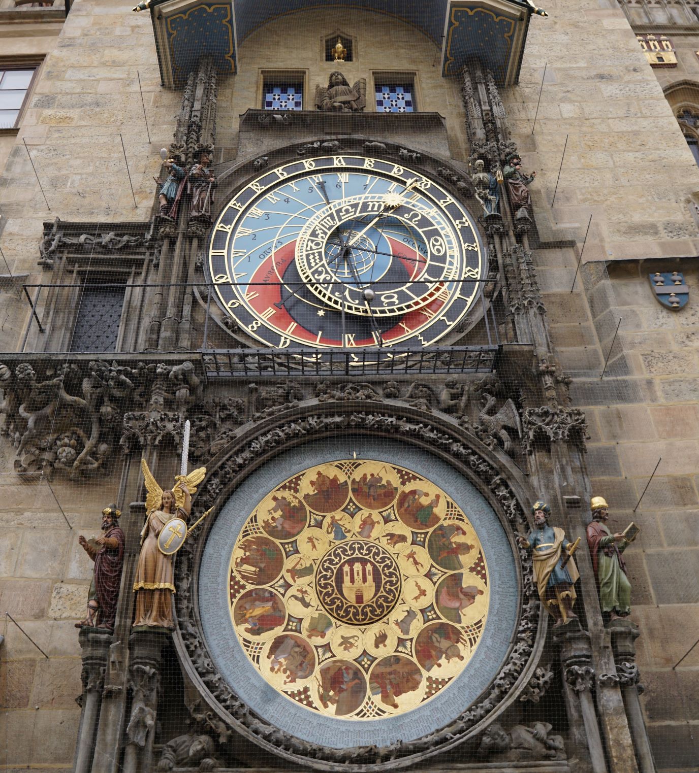 Z kalendárnej tabule možno odpočítať aktuálny mesiac, deň a nepohyblivé sviatky kresťanského kalendára. Každú celú hodinu orloj oživí fascinujúce divadlo pochodujúcich 12 apoštolov a pohyblivých sôch po jeho okrajoch, aby všetko ukončil zvuk zvonu na vrchole veže. Snáď nikde na svete nečakajú také veľké davy ľudí na pomerne krátke predstavenie.