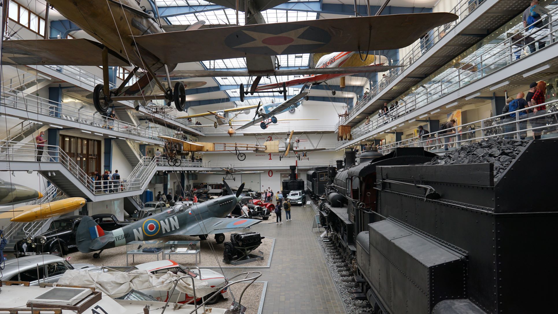 Najväčšiu pozornosť návštevníkov múzea púta expozícia histórie dopravy v tzv. dopravnej hale, ktorá je venovaná pamiatke priekopníkov na zemi, vo vode i vo vzduchu. V samostatných príbehoch ukazuje historický vývoj automobilovej, motocyklistickej, cyklistickej, leteckej a lodnej dopravy a v kratších exkurzoch aj úseky z dejín železničnej dopravy a vývoja hasičskej techniky na území Česka. Návštevník tu môže obdivovať napríklad prvý československý automobil, vozidlo NW President z roku 1898 alebo lietadlo Kašpar JK, na ktorom v roku 1911 vykonal Jan Kašpar prvý diaľkový let v dejinách českého letectva. Za pozornosť stojí aj automobil Tatra 80 prezidenta T. G. Masaryka a z leteckej zbierky stíhacie lietadlo Supermarine Spitfire LF Mk.IX či plynový balón Praha.