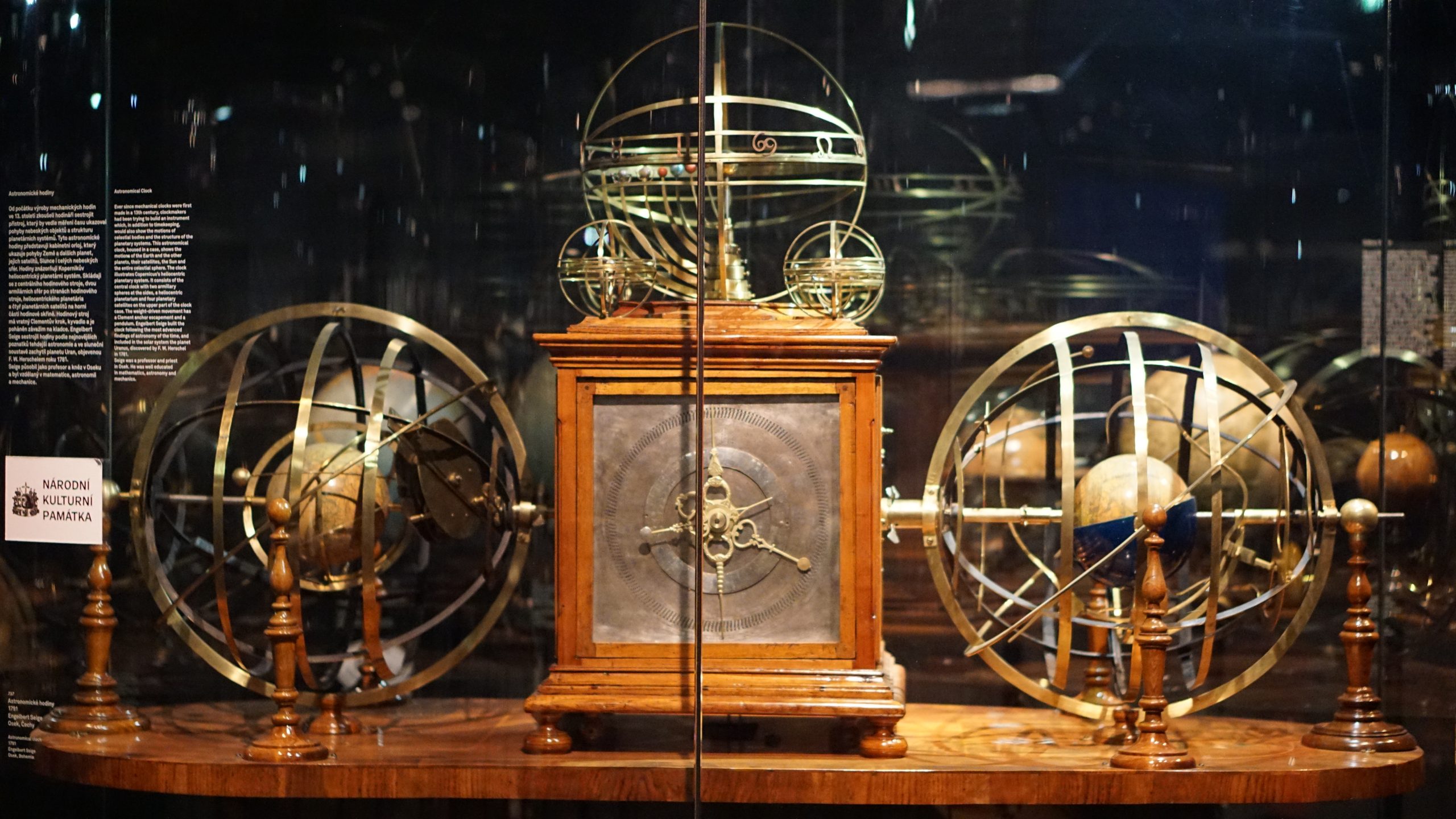 Prvá časť expozície Astronómia popisuje vývoj astronómie a predstavuje jej významné medzníky. Najstarším predmetom zbierkového fondu je meteorit nájdený v Argentíne na území Campo del Cielo, kam dopadol pred 5 000 rokmi. Druhá časť ukazuje v šiestich tematických častiach prístroje používané v astronómii v rôznych historických obdobiach od 15. do 20. storočia. Ťažisko prezentácie je situované do 16. až 17. storočia, keď v Prahe, sídelnom meste cisára Rudolfa II., pracovali najvýznamnejší astronómovia svojej doby – Tycho Brahe a Johannes Kepler. Aj 18. storočie s armilárnymi sférami, meracími prístrojmi, glóbusmi, slnečnými hodinami a ďalšími predmetmi dáva nahliadnuť do podivuhodného sveta astronómov, geometrov, kartografov a počtárov, ale aj navigátorov lodí.