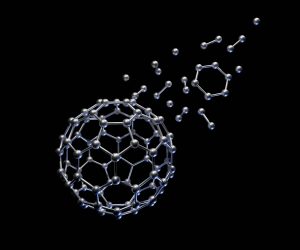 Carbon nanostructure called fullerene on the black background