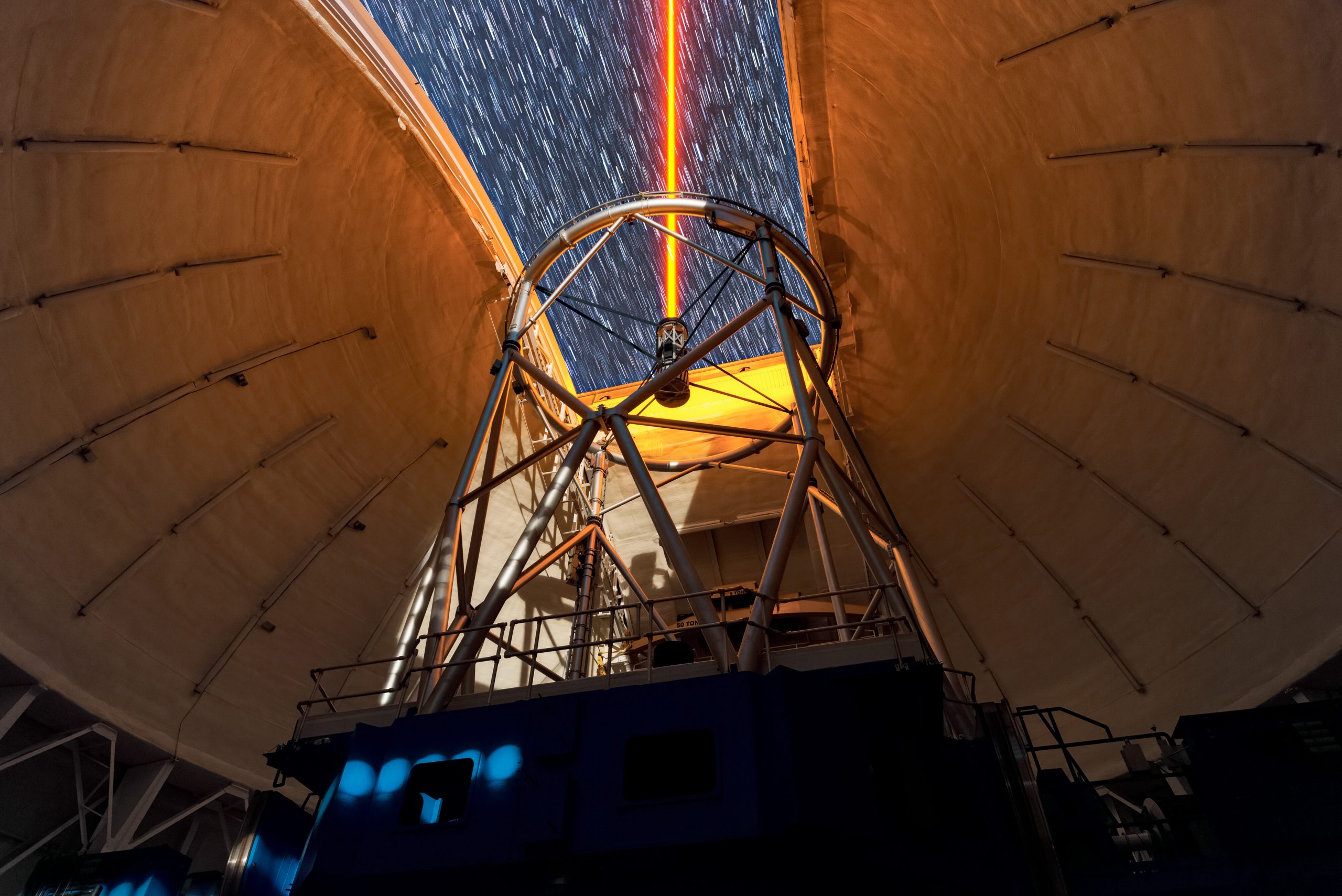 Otvorená kupola a astronomický ďalekohľad v interiéri observatória