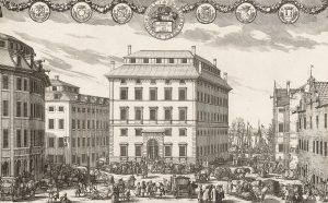 Dobová ilustrácia budovy banky vo Švédsku