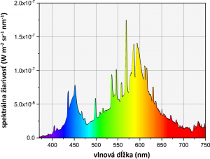 Graf zobrazuje spektrum svetla nočnej oblohy