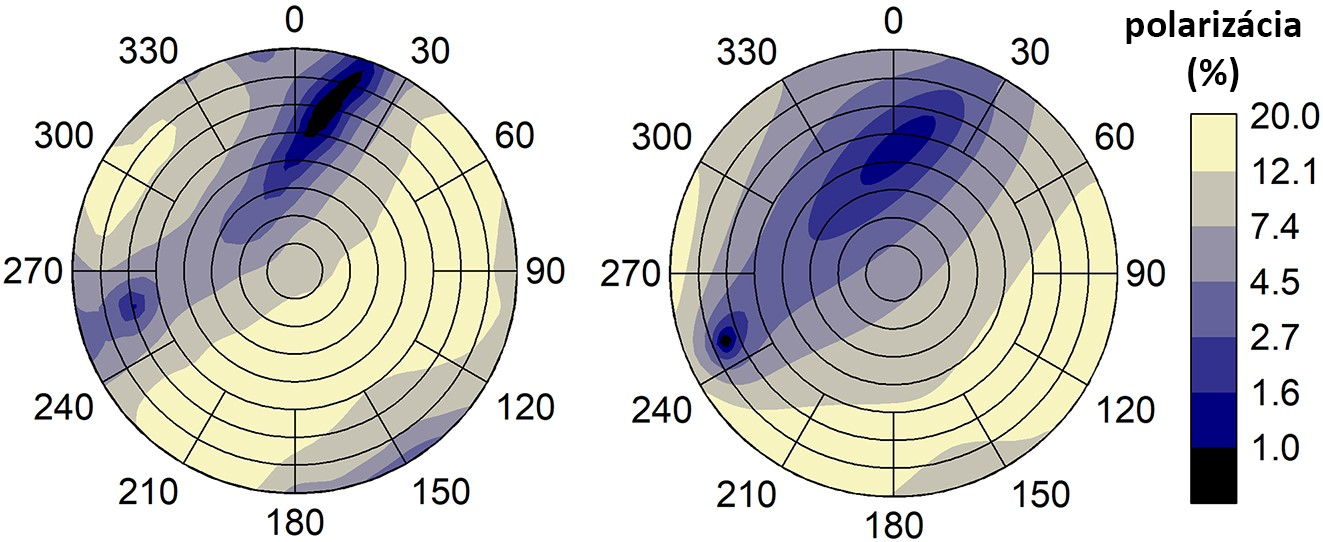 Porovnanie stupňa polarizácie svetla predpovedaného modelom a reálne nameraného
