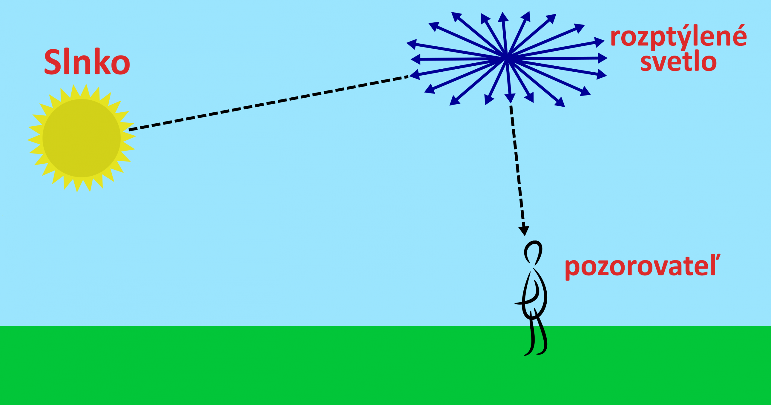 Jednoduchá ilustrácia rozptýleného svetla zo Slnka z pohľadu človeka