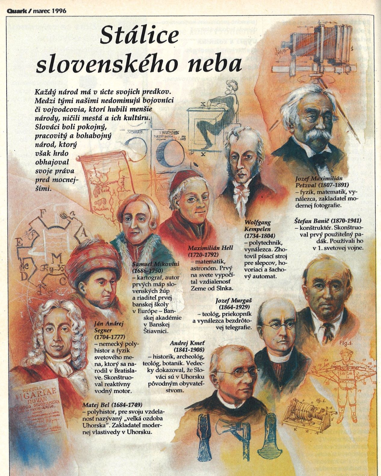Anketa Najväčší Slovák, ktorá zaujala časť verejnosti, čoskoro vyvrcholí. Veľkých Slovákov sme si v Quarku pripomenuli aj v marci 1996. Vybrali sme ich vtedy deväť. Išlo o ukážku z knihy Slovensko moje, ktorá hovorí o dejinách Slovenska, jeho kultúre, prírode, minulosti i prítomnosti. Porovnajte si, koľkí z tohto výberu sa dostali do finále tohtoročnej celonárodnej ankety.