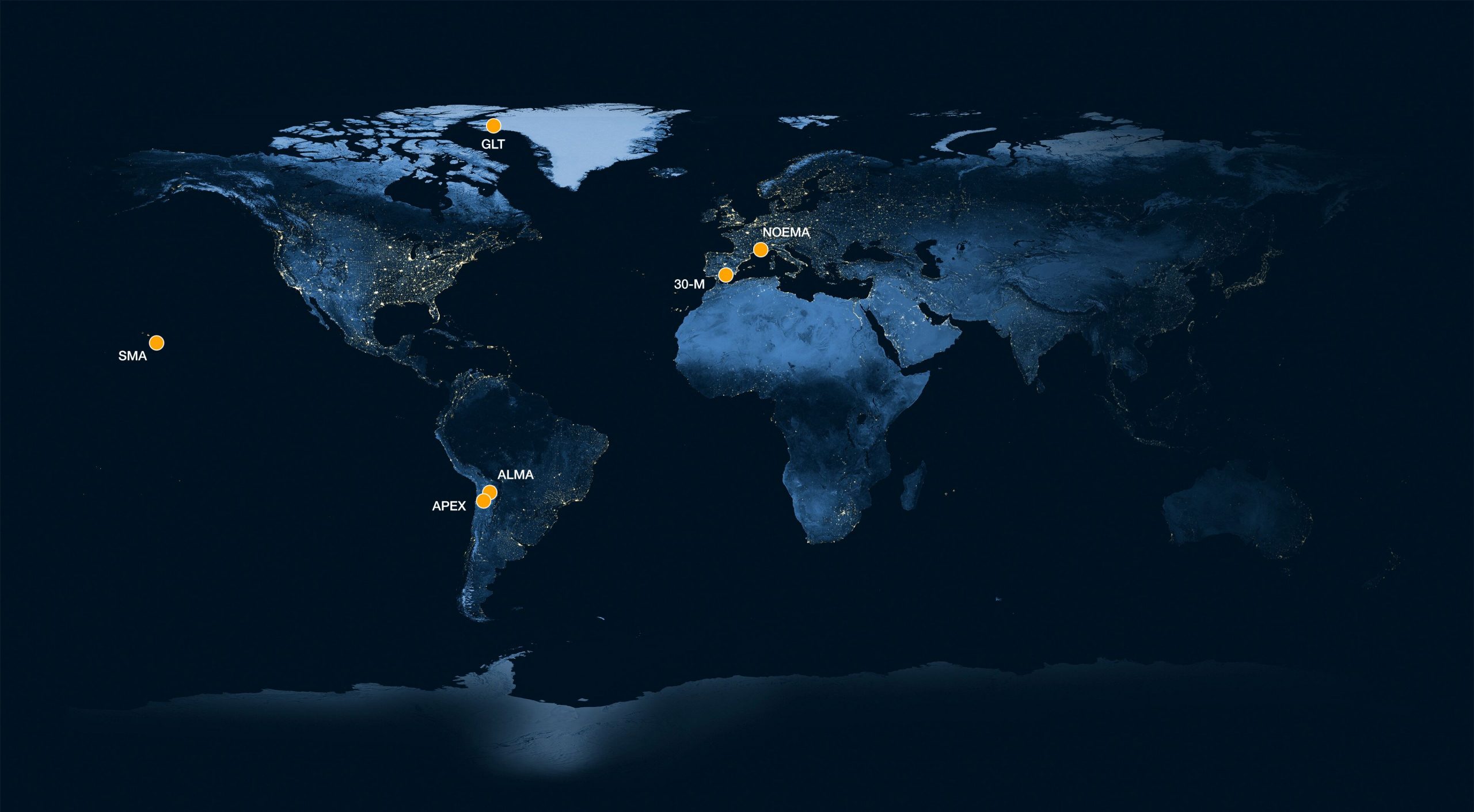 Rozmiestnenie rádioteleskopov patriacich do združenia EHT, ilustrácia ESO/M. Kornmesser