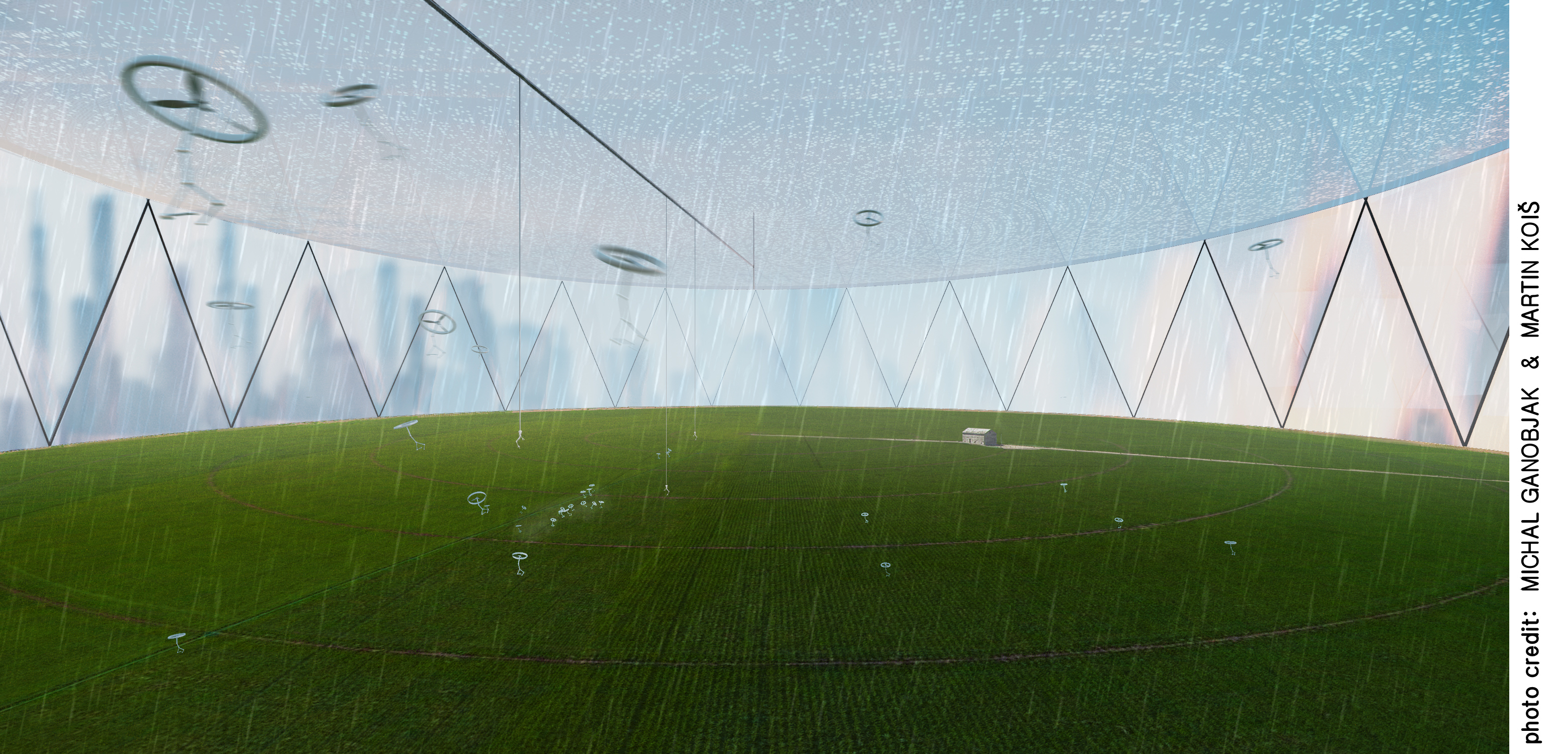 Píše sa rok 2250, Zem je husto osídlená, žije na nej takmer 50 miliárd ľudí. Nové technológie ponúkajú niekoľko možností udržateľnej produkcie jedla. Jednou z nich je aj zavesená stavba – Plantage Skyhanger (plantážny vešiak, mrakovis) a mohla by vyriešiť lokálny problém produkcie a dodávky jedla vo vysoko urbanizovaných oblastiach rovníka. Taká je vízia slovenských architektov Michala Ganobjaka a Martina Koiša.