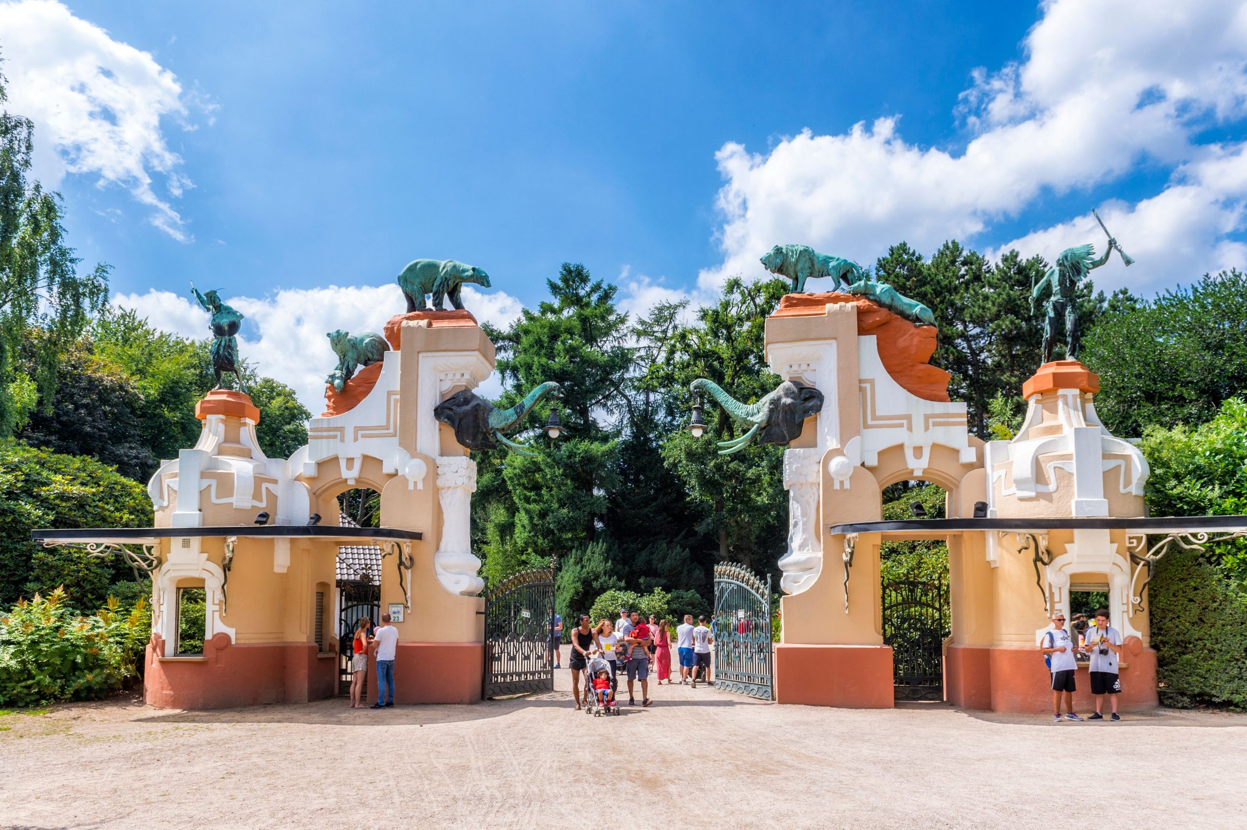 Beautiful shot of the entrance at Hagenbeck zoo during the day with visitors in Hamburg, Germany