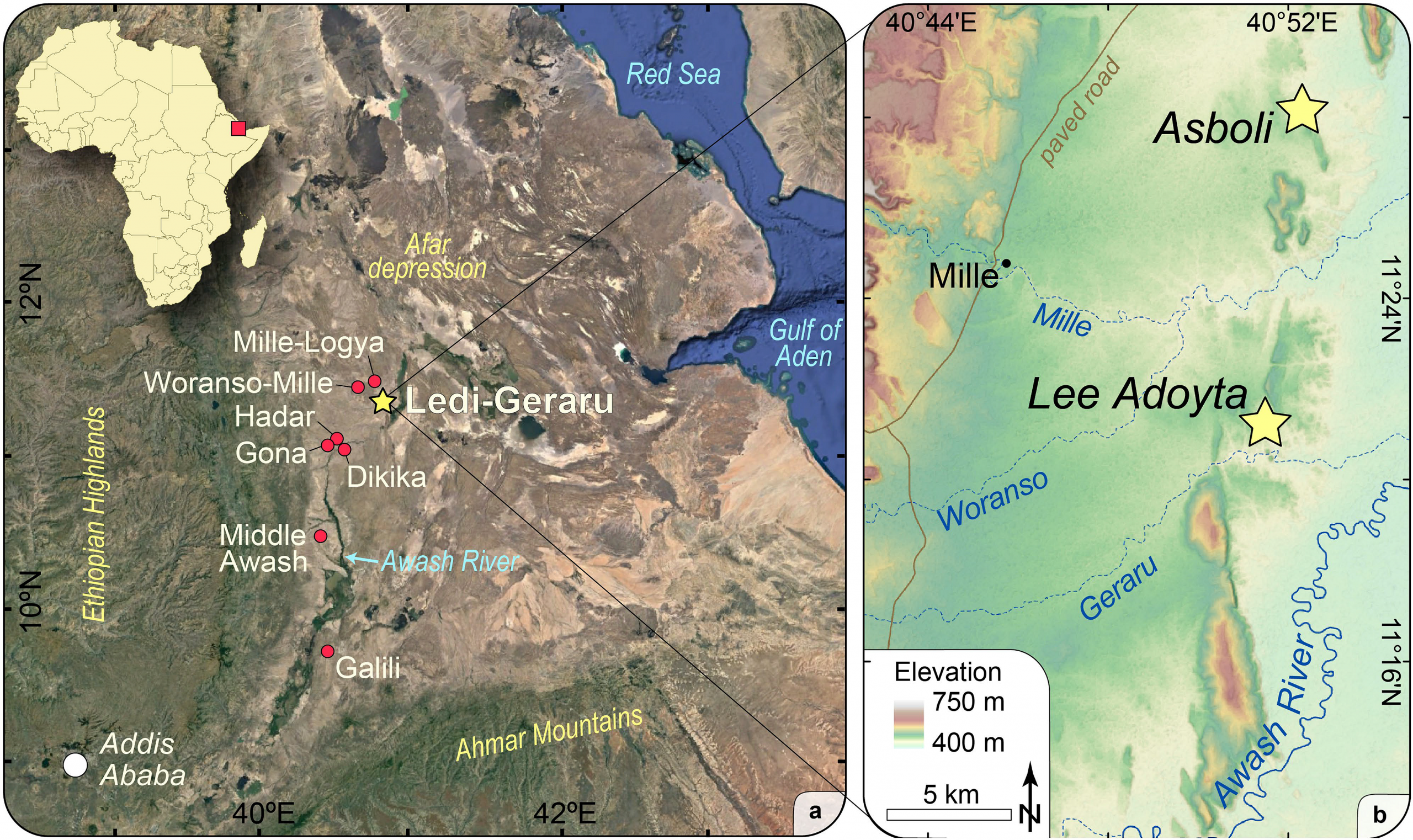 Na mape je vyznačená významná poloha výskumnej lokality v Etiópii