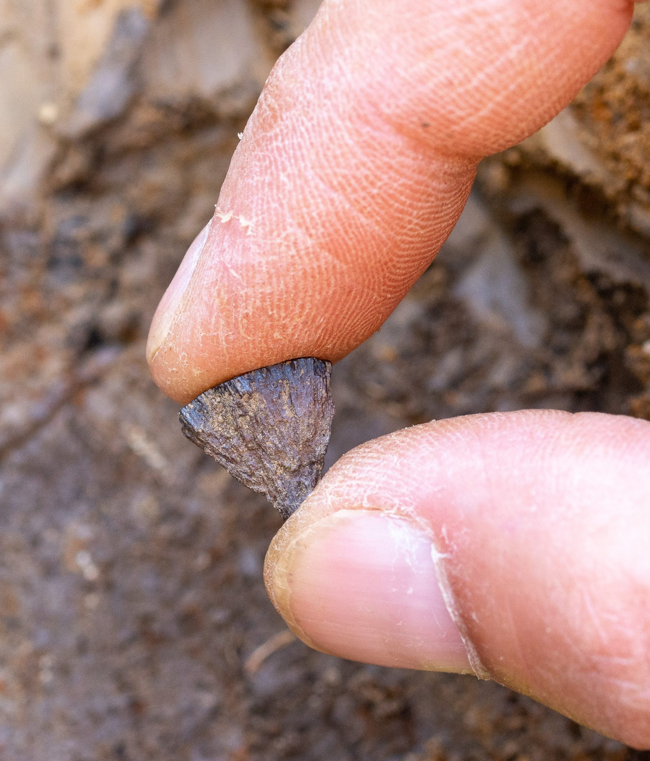 Úlomok kameňa drží muž medzi palcom a ukazovákom
