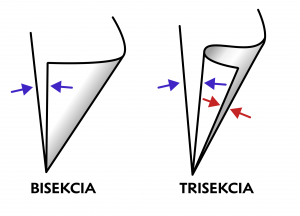 Bisekcia uhla značí jeho rozdelenie na dve presne rovnaké časti, trisekcia na tri rovnaké časti. Ak nemáme k dispozícii pravítko a kružidlo, iba ohýbaním papiera je možné dosiahnuť rozdelenie pre všetky uhly, či už na polovicu, alebo na presné tretiny.