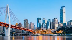 Night Scenery of Hongya Cave and Qiansimen Bridge in Chongqing, China