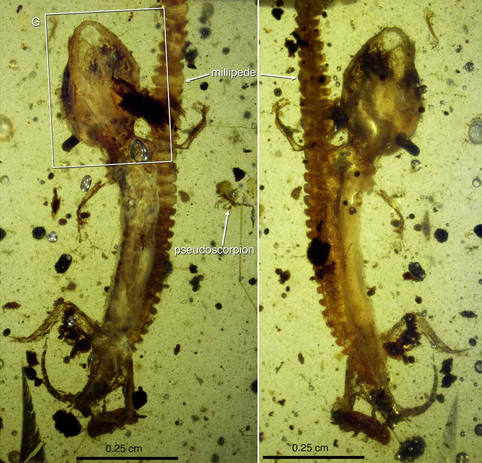 Výnimkou nie je ani jantár z Mjanmarska (Barma). Pochádza zo záverečného obdobia druhohôr – kriedy a jeho vek je datovaný na 99 miliónov rokov. Okrem fosílií hmyzu, škorpiónov či rastlín vzácne obsahuje uchované aj stavovce – obojživelníky, plazy alebo perie dinosaurov zakonzervovaných aj s najmenšími detailmi, nezriedka aj so zachovanými parazitickými roztočmi. Za zmienku stojí, že v tomto jantári sa veľmi zriedkavo a najmä prekvapujúco našli tiež amonity – morské vyhynuté hlavonožce. Tie sa pravdepodobne dostali do živice stromov pri cunami, ktoré zaplavilo praveký les. Vráťme sa však teraz k stavovcom. Jedným zo skutočne jedinečných a nečakaných nálezov sú albanerpetontidy. Ide o vyhynutú skupinu veľmi úspešných obojživelníkov, ktoré žili na Zemi po dobu 165 miliónov rokov. Žili od strednej jury (obdobie druhohôr) po spodný pleistocén. Prežili teda aj masové vymieranie na hranici kriedy a paleogénu pred 65 miliónmi rokov, keď vyhynuli dinosaury, ale aj mnohé iné skupiny (napríklad už spomínané amonity).