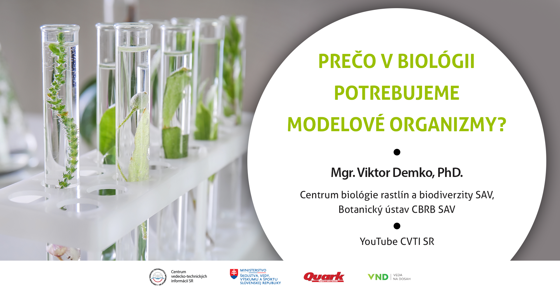 Ako príklad uvedie kvasinky, červa C. elegans alebo muchu drozofilu. Konkrétne popíše modelovú rastlinu – mach Physcomitrium patens a jeho unikátne vlastnosti v porovnaní so všetkými ostatnými modelovými rastlinami. Zameria sa aj na to, aké praktické využitie má modelový mach v základnom aj aplikovanom výskume a biotechnológiách. V prednáške taktiež objasní, ako vedci dokážu odhaľovať nové funkcie génov v rastlinách.