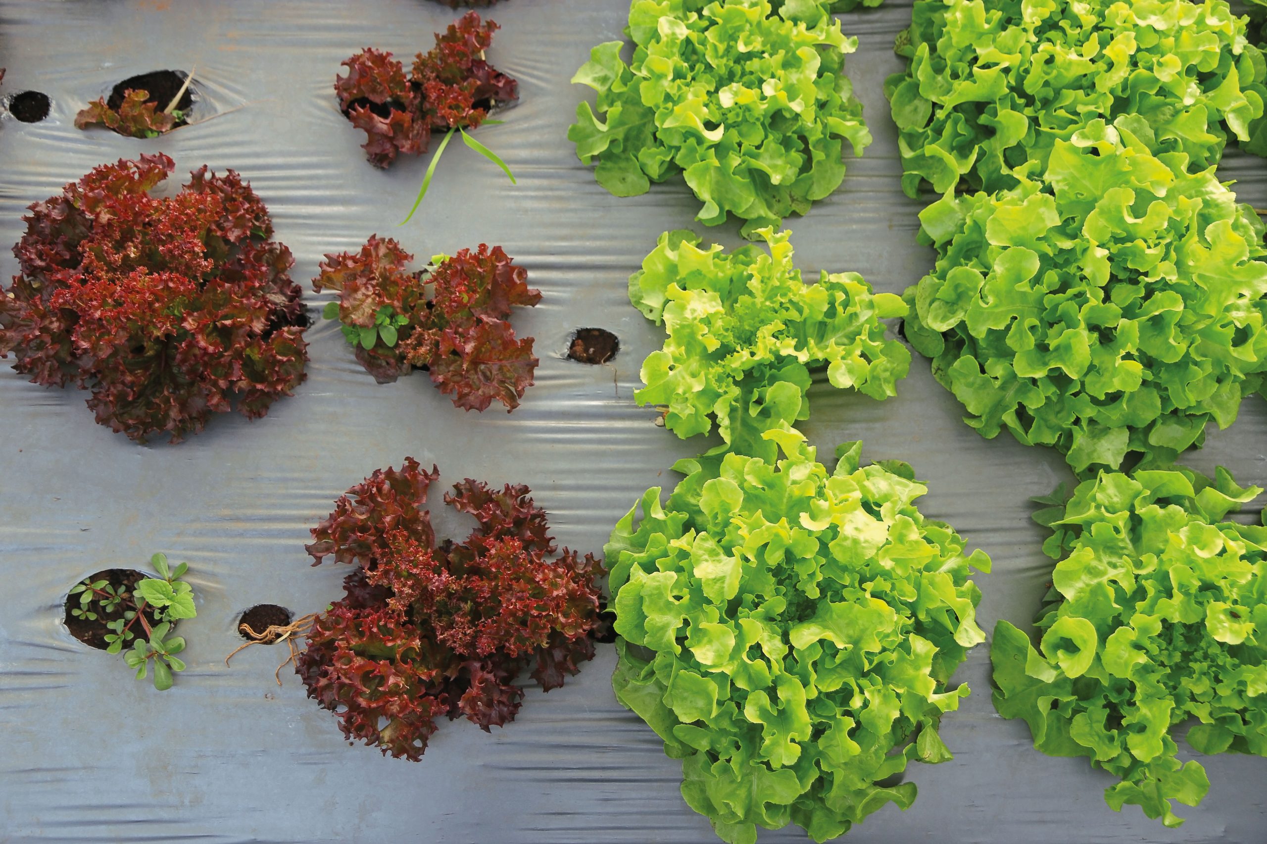 Priesady zeleniny vykúkajú spod geotextílie