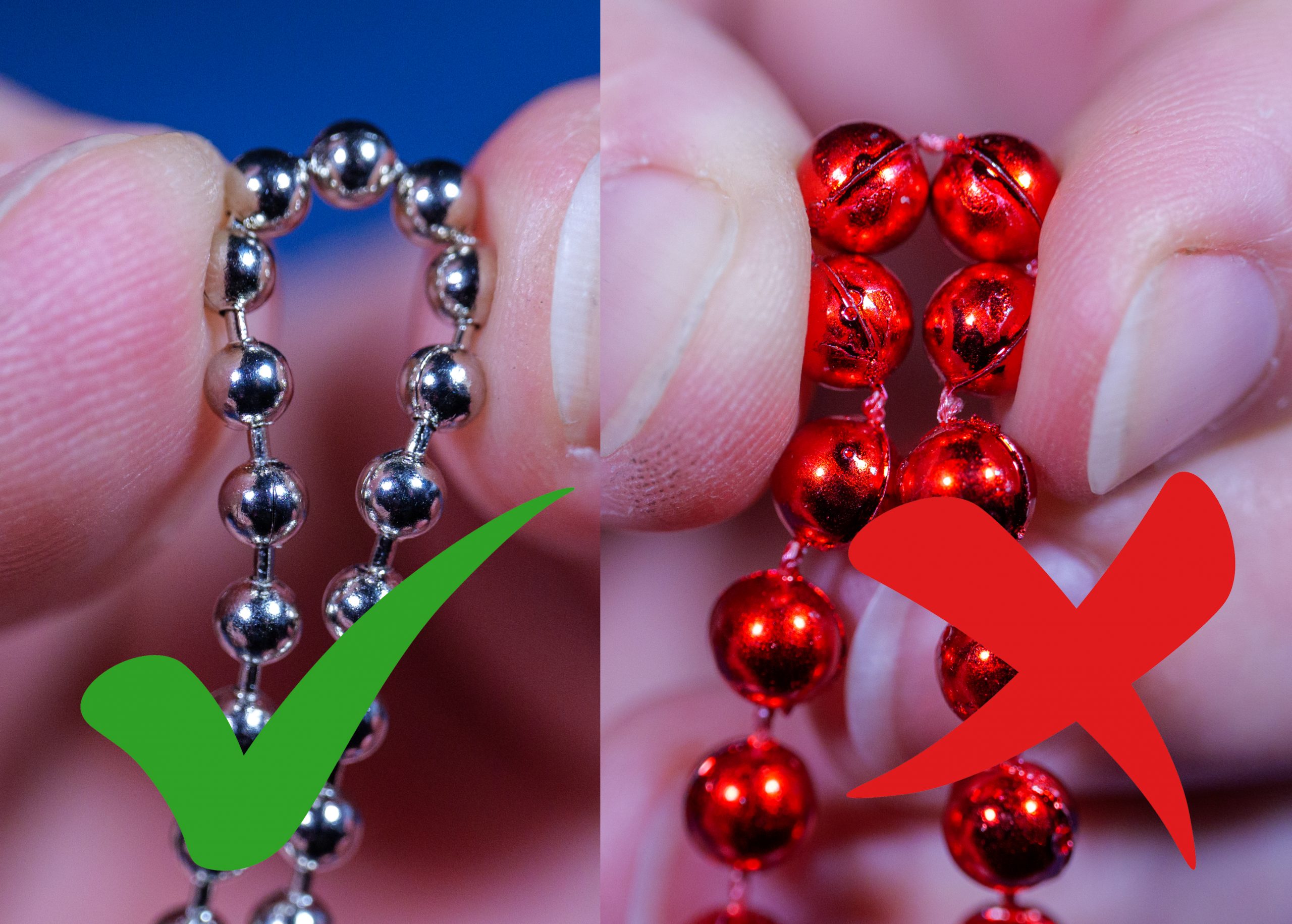 Guľôčkovú reťaz postupne ukladáme do sklenej nádoby bez potreby dodržiavať špeciálny postup. Dôležité je len, aby sa jednotlivé vrstvy nekrížili. Posledný úsek reťaze necháme voľne prečnievať cez okraj nádoby. Sklenú nádobu volíme najmä preto, aby sme mohli pozorovať správanie sa reťaze v jej vnútri. Nádobu umiestnime na okraj stola alebo inej vyvýšenej podložky. Voľný koniec reťaze jemne potiahneme tak, aby vlastnou váhou začal padať a postupne vyťahoval zvyšok reťaze z nádoby.