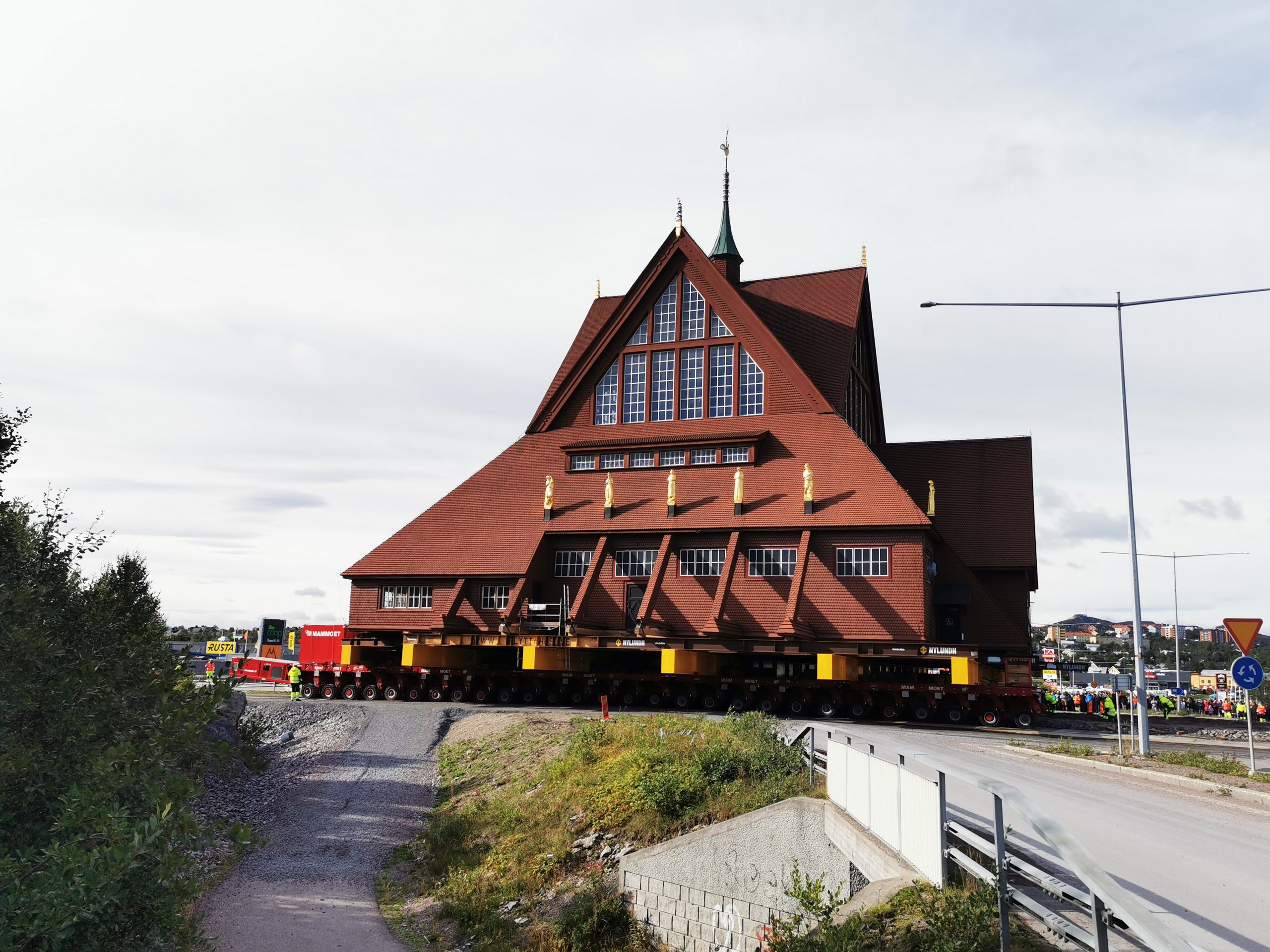 Budova dreveného kostola sa presúva na špeciálnom podvozku