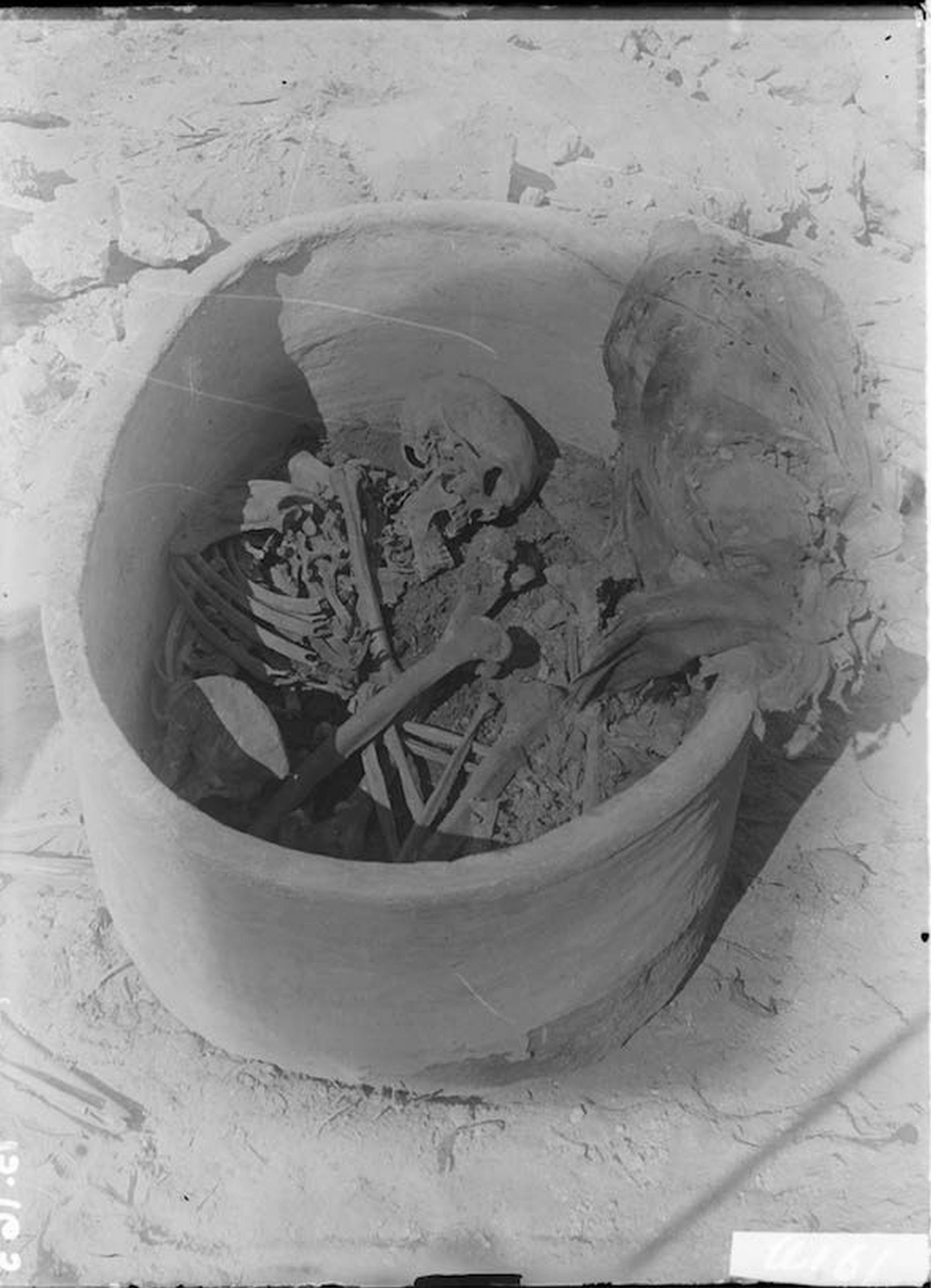 Vnútro nádoby s telesnými ostatkami človeka