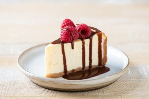 Slice of cheesecake with chocolate sauce