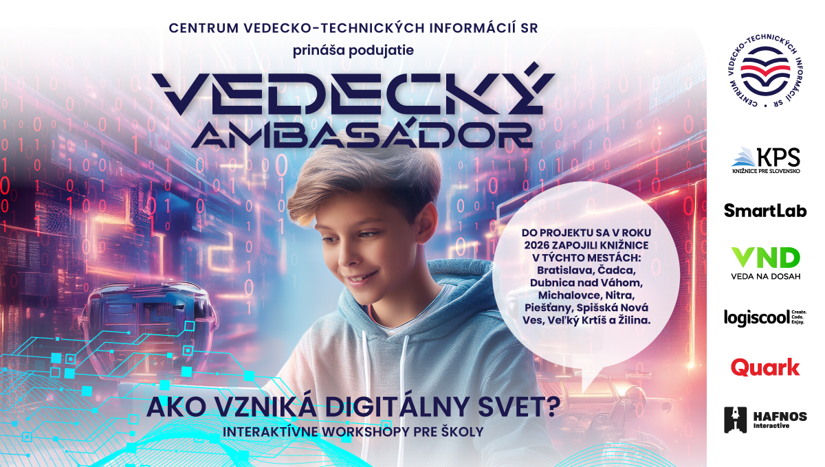 Interaktívno-edukatívny projekt Vedecký ambasádor sa po úspešnom pilotnom ročníku vracia k žiakom 8. a 9. ročníkov základných škôl. Projekt, ktorý prináša Centrum vedecko-technických informácií SR, prichádza s inovovaným programom a rozšírenou spoluprácou s odbornými lektormi. Programovanie, kreativitu, digitálne zručnosti, záujem o vedu a technológie si prehĺbia žiaci v ďalších slovenských mestách.