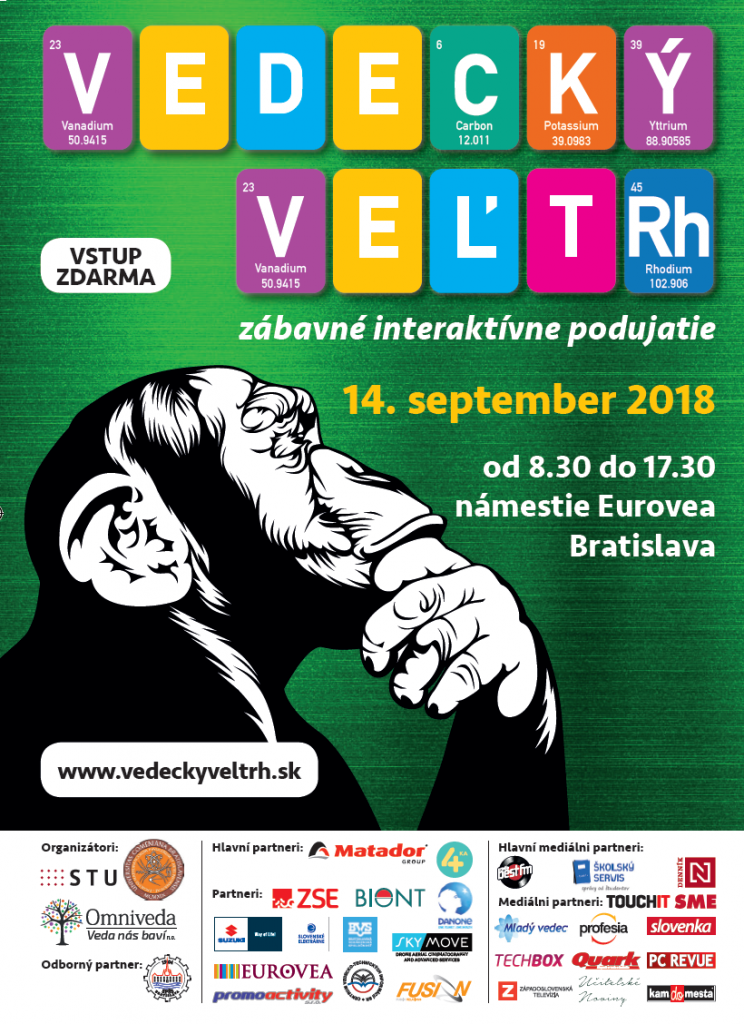Veda nás baví n. o. v spolupráci s Fakultou matematiky, fyziky a informatiky Univerzity Komenského v Bratislave a Slovenskou technickou univerzitou v Bratislavesa rozhodla dňa 14.9.2018 usporiadať už tretí ročník Vedeckého veľtrhu na námestí NC Eurovea v Bratislave.