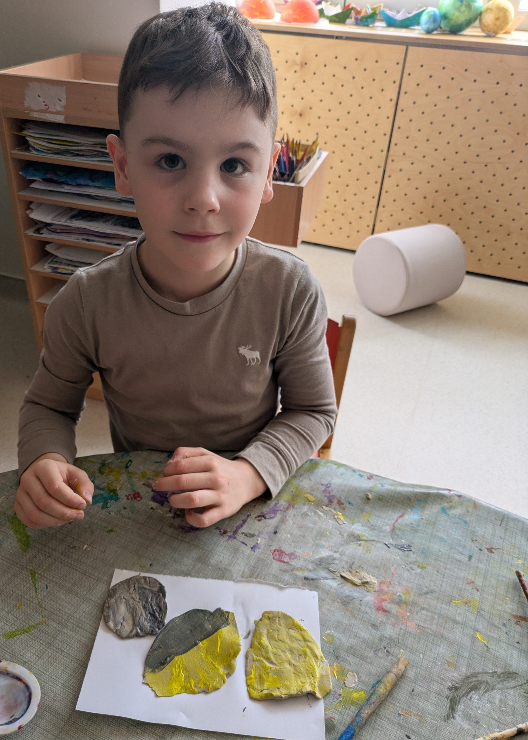 Mladší žiak modeluje z hliny