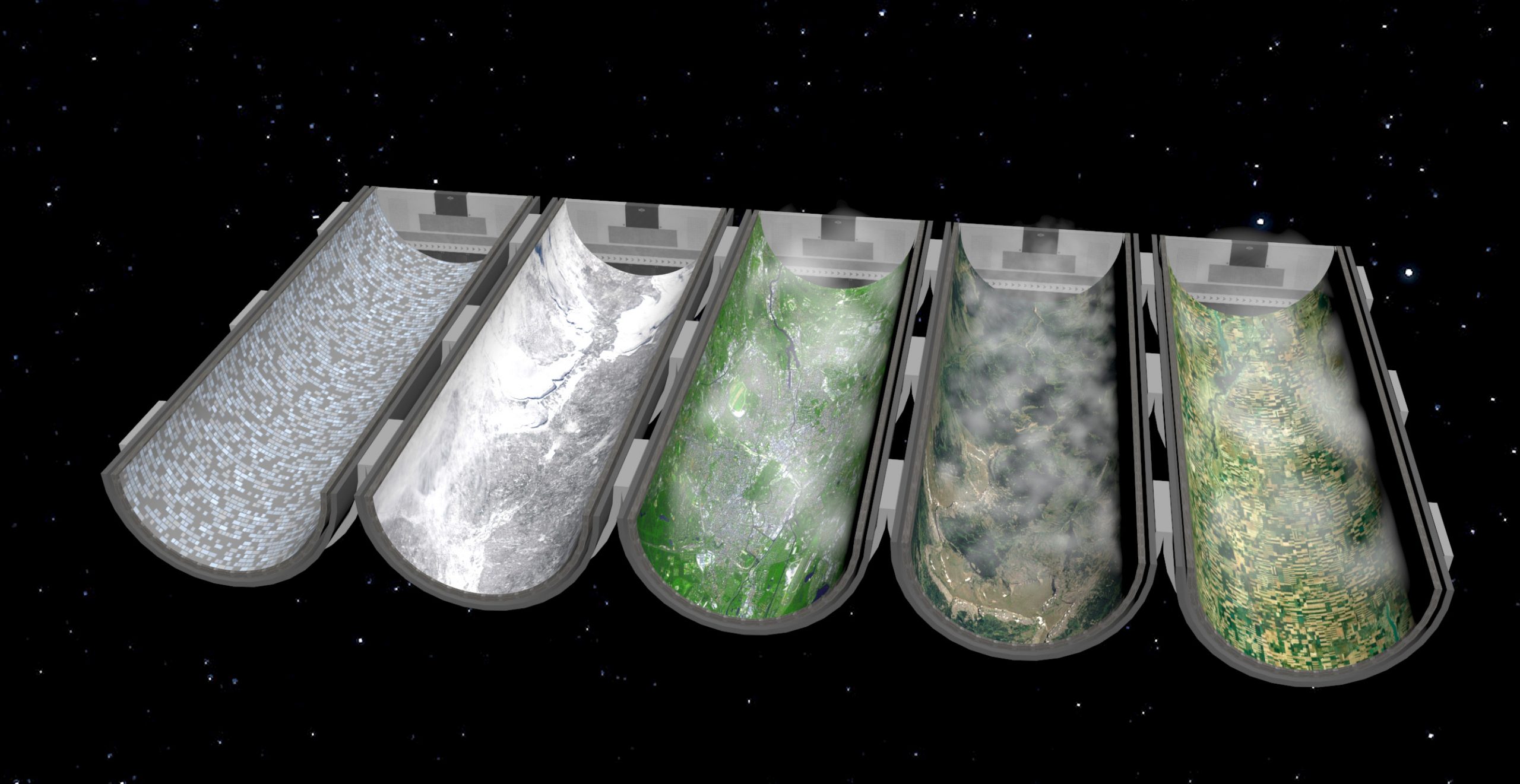 Život vnútri stanice by sa príliš neodlišoval od života na Zemi. Dostatočne veľká plocha by poskytla priestor pre všetky profesie, výskum, voľnočasové aktivity aj rodinný život. Celkové prostredie by bolo umelo vytvorené podľa potreby a požiadaviek obyvateľov: rozľahlé zelené plochy s rodinnými domami alebo husto zastavané komerčné zóny, dostatok priestoru na zábavu a relax či napodobeniny historických centier. Pohoria a zalesnené plochy by poskytovali pobyt v prírode, aj keď umelo vytvorenej. V každej stanici by sa musela nájsť tá správna rovnováha pre živočíšnu ríšu. Napríklad pre vtáky by predstavovali veľký problém neprítomnosť magnetického poľa a slabnúca gravitácia s výškou letu (presne v strede objemu stanice na osi otáčania by gravitácia nebola). Búrkové oblaky sa bežne tvoria od výšky 500 metrov. Pri priemere 8 kilometrov by každá stanica mala vlastné počasie. Coriolisove sily, ktoré sa prejavujú vnútri rotujúcich telies, by vytvorili prúdenie vzduchu a výkyvy počasia. Obyvatelia by však nezažívali silné búrky, iba občasný jemný dážď, vietor a kolísanie teploty. Umelým korigovaním teploty by prebiehalo striedanie ročných období. Prípadne by mohlo byť v jednom valci neustále leto a v druhom chladnejšie počasie na zimné dovolenky. Ďalší valec by mohol byť napríklad venovaný iba vedeckému výskumu alebo obrovskému univerzitnému kampusu. Iný by zasa mohol byť primárne pre voľne žijúce zvieratá – niečo ako obrovský národný park s možnosťou návštev s vyhliadkovými rampami vo výške nenarúšajúcej život zvierat (ideálna zoologická záhrada). V každej takejto stanici by to mohlo vyzerať úplne inak. Bol by to väčšmi malý národ ako vesmírna stanica.