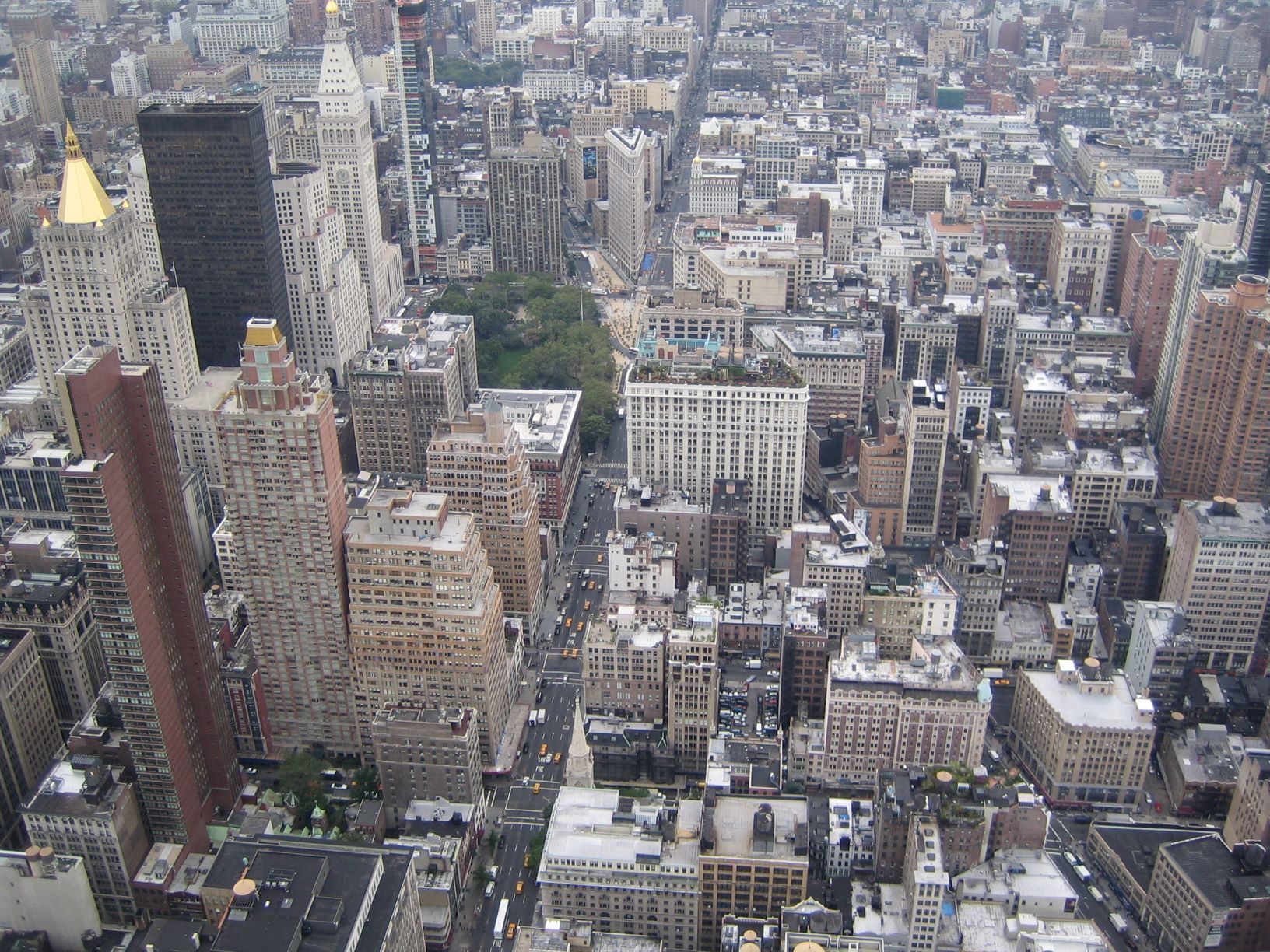 Orientácia v New Yorku, najmä na Manhattane, je veľmi ľahká. Nedá sa zablúdiť. V meste je sieť vodorovných (street) a kolmých (avenue) ulíc, ktoré sú veľmi dobre označené číslami a názvami. Ako jediná nezapadá do tejto geometrickej mozaiky ulíc slávny Broadway. Táto ulica nie je rovná, ale kľukatí sa po celom Manhattane. Je to preto, lebo presne kopíruje smer a tvar pôvodného indiánskeho chodníka. Prehliadka mesta sa môže začať najznámejším newyorským mrakodrapom Empire State Building, ktorý bol v 30. rokoch minulého storočia najvyššou budovou na svete. Z vyhliadkovej terasy na 102. pochodí tohto 381 metrov vysokého mrakodrapu je nádherný výhľad na celý Manhattan, ďalšie štvrte mesta i na niektoré časti susedného mesta Jersey City. Z vtáčej perspektívy sa dajú ľahko určiť miesta ďalšieho postupu. Západným smerom sa nachádza svetoznáma kultúrno-športová hala, kde sa hrá aj NHL – Madison Square Garden, pod ktorou je moderná železničná stanica Pennsylvania Station. Neďaleko odtiaľto púta pozornosť zaujímavý historický objekt, ktorý treba vidieť. Na mieste, kde sa stretávajú tri ulice – 5. avenue, 23. street a Broadway – stojí jeden z najstarších mrakodrapov v New Yorku. Pôvodne sa nazýval Fuller Building, no keďže má zvláštny trojuholníkový pôdorys (čelná strana má šírku len 2 metre), ľudia ho začali prirovnávať k žehličke, a preto ho premenovali na Flatiron Building (Žehličkový dom). Budova bola dokončená v roku 1902 (86 metrov, 21 poschodí) a pred viac ako sto rokmi vzbudzovala svojou obrovskou výškou obdiv všetkých obyvateľov mesta.