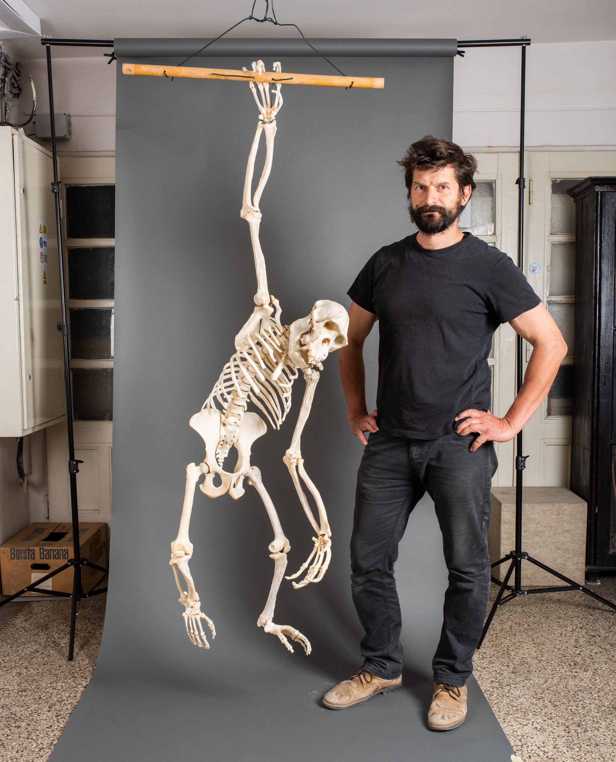 Mgr. Juraj Čačaný, PhD., s Kongom pred umiestnením kostry v expozícii, foto archív SNM-PM