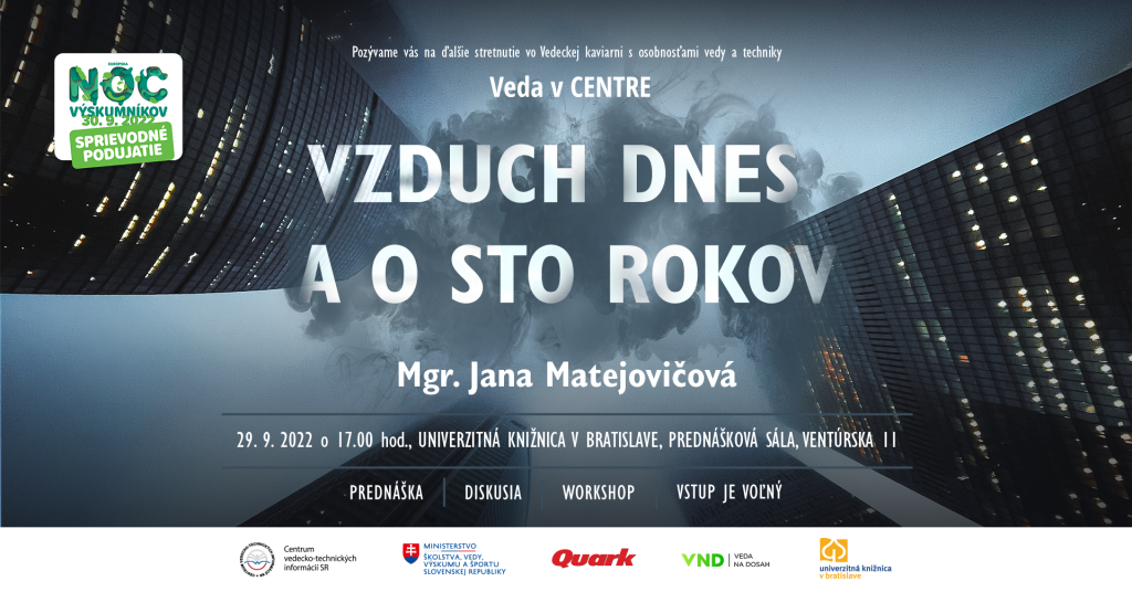 Táto prednáška je sprievodným podujatím v rámci podujatia Európska noc výskumníkov (ENV) 2022. Hlavný program podujatia ENV sa uskutoční 30. 9. 2022 v priestoroch Starej tržnice a okolitých lokalitách. Jeho súčasťou budú rôzne sprievodné podujatia, a to vedecké kaviarne a cukrárne, workshopy, súťaže či podcasty, ktoré prinesú zaujímavé prezentácie výnimočných slovenských vedcov. Bližšie informácie nájdete na www.nocvyskumnikov.sk a www.vedanadosah.sk.