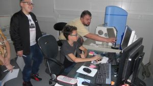 S princípom 3-D tomografu sa deti oboznámili v laboratóriu tomografie. Dozvedeli sa, ako sa sledujú defekty v štruktúre materiálov, teda trhliny, pórovitosť či vmestky (drobné čiastočky rozptýlené v materiáli). Videli, ako vyzerá plošný spoj, počítačový čip a aj komplexná vnútorná štruktúra telefónu. Zaujímavé bolo pozorovať veľmi vzácne starodávne šperky, pretože 3-D tomografia je jediná metóda, ktorá umožňuje zmapovať ich vnútornú štruktúru a získať 3-D model šperku. Následne je možné repliku takéhoto šperku na 3-D tlačiarni aj vyrobiť. V prípade sledovania živých organizmov zaujala deti vnútorná štruktúra jaštera od pokožky až po kostru. V laboratóriu spektrometrie a mikrotvrdosti žiaci zistili presné chemické zloženie zliatin na báze hliníka a železa pomocou iskrového spektrometra, ktorý funguje na princípe charakterizácie jednotlivých prvkov po iskrovom výboji. Potom na oboch vzorkách zmerali mikrotvrdosť a skúsili, akú majú jednotlivé materiály odolnosť proti vtlačku (hĺbku vtlačenia). Železo malo menší vtlačok, čo znamená väčšiu tvrdosť a, naopak, hliník mal väčší vtlačok a potvrdila sa jeho menšia tvrdosť.
