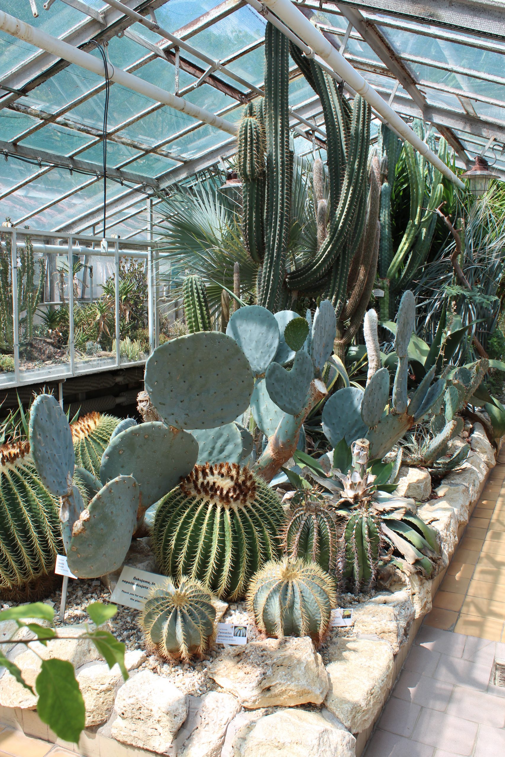 Kaktusy v rôznych veľkostí a tvarov v skleníku